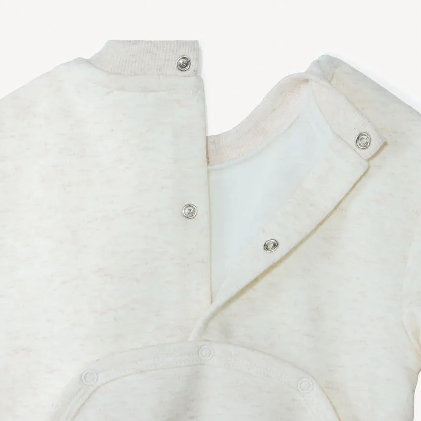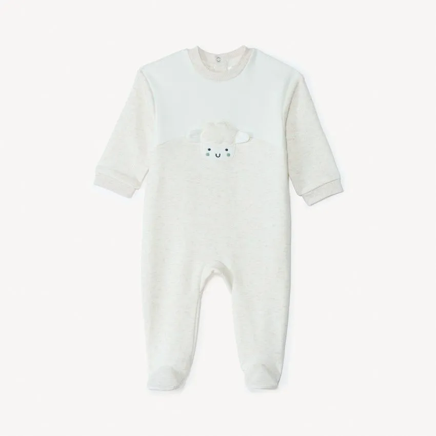 Спереди модель украшена милой рожицей овечки, которая придаёт комбинезону очаровательный и дружелюбный вид. Застёжки-кнопки сзади на спине и на поясе упрощают процесс одевания и переодевания малыша.