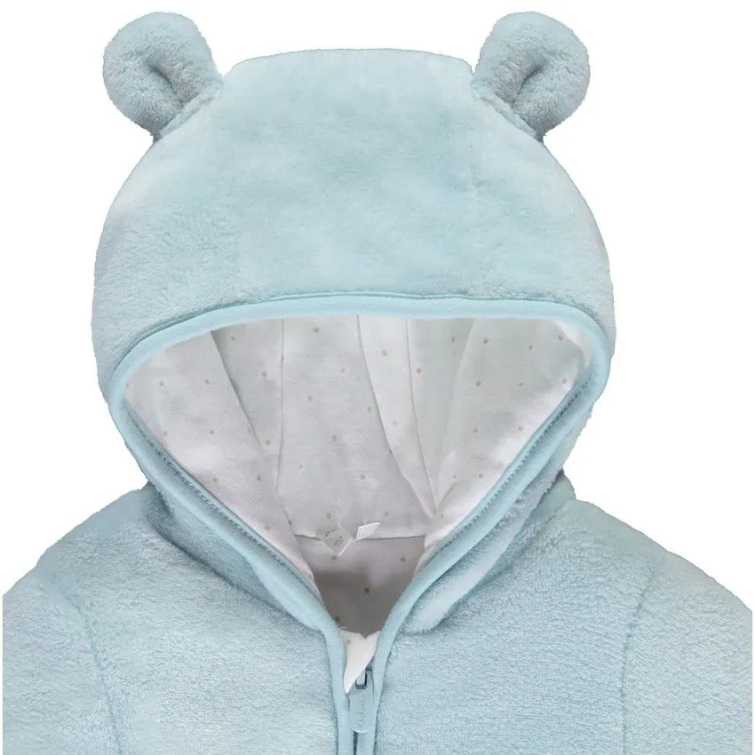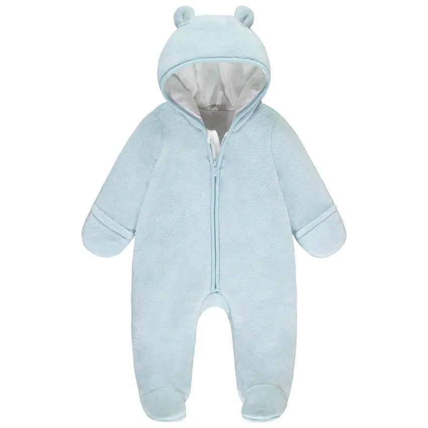 Этот утепленный комбинезон для малышей — идеальный выбор для холодных дней, сочетая комфорт и функциональность. Капюшон с милыми ушками добавляет игривости и защищает малыша от холода, а рукава-трансформеры, которые можно превратить в перчатки, обеспечивают дополнительную защиту от мороза. Кнопки на ножках позволяют легко переодевать малыша