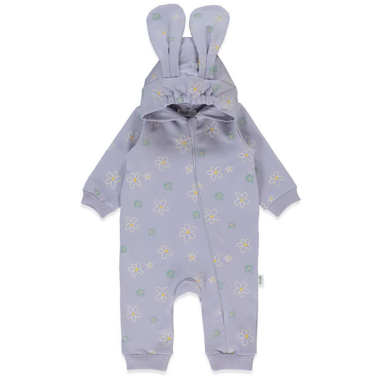 Нежный комбинезон для малышки с капюшоном, украшенный цветочным принтом. Капюшон дополнен декоративными ушками и небольшой резиночкой для комфортной посадки. Застёжка-молния расположена наискосок — удобно при переодевании. Изготовлен из мягкого и приятного к телу материала, идеален для прогулок в прохладную погоду.