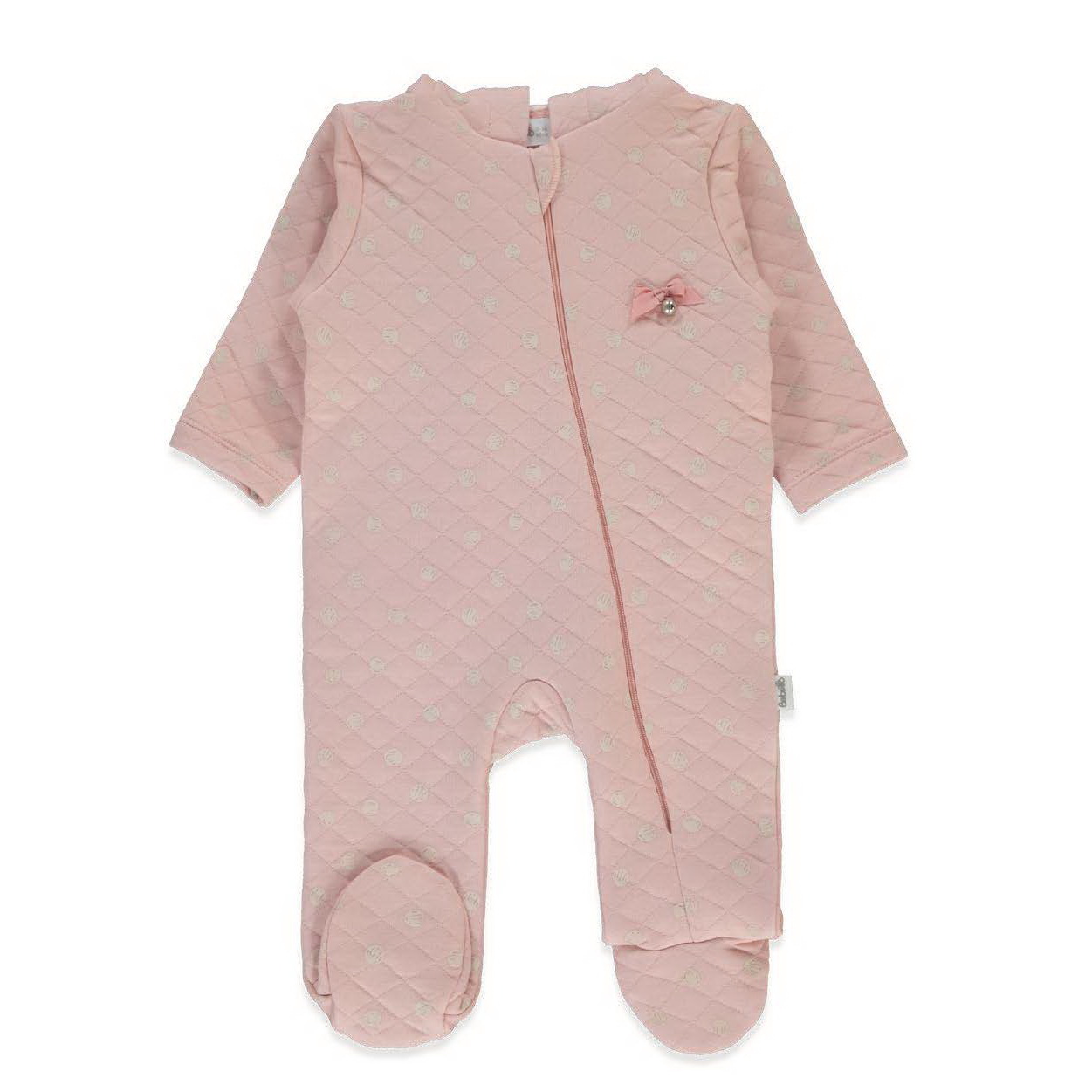 | Комбинезон для малышей из уютной ткани с фактурным ромбовидным узором. Украшен милым принтом и небольшим бантиком на груди, что придаёт образу нежности. Идеален для прохладной погоды — обеспечит комфорт и тепло во время прогулок или дома. |