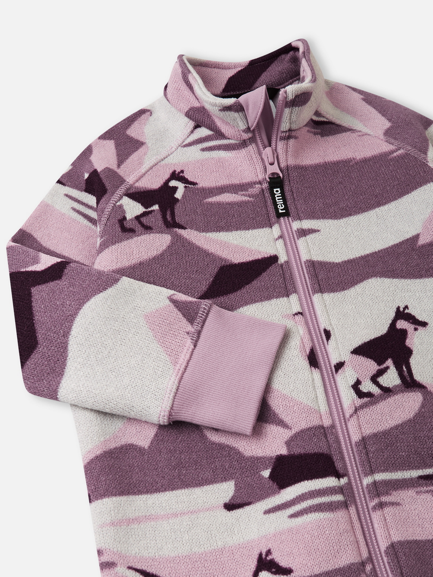 Мягкий вязаный меланжевый флис очень стильно смотрится, он мягкий и уютный, как пряжа, но при этом имеет все достоинства флиса. Флис – теплый и дышащий материал, который быстро сохнет и не парит. Молния во всю длину облегчает надевание, а защита для подбородка не даст поцарапать шею и подбородок. Классный модный рисунок!