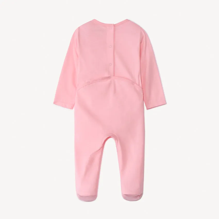 Комбинезон для малышки с длинными рукавами — удобный и стильный вариант для повседневного гардероба. По центру расположен яркий принт с надписью, который делает образ малышки ярким и привлекательным.