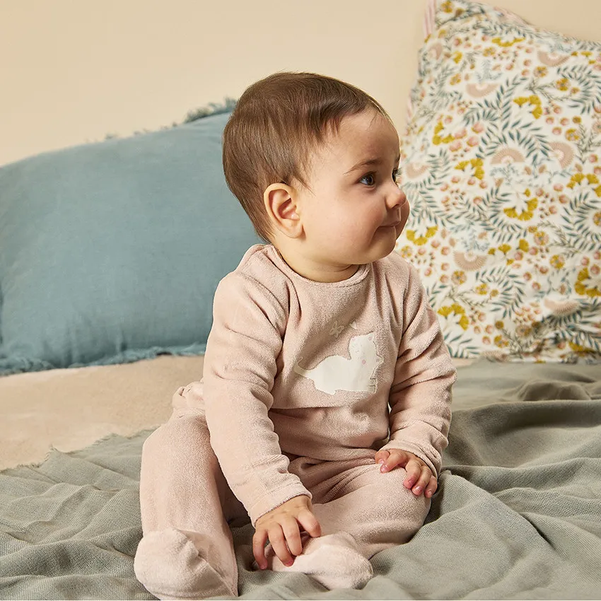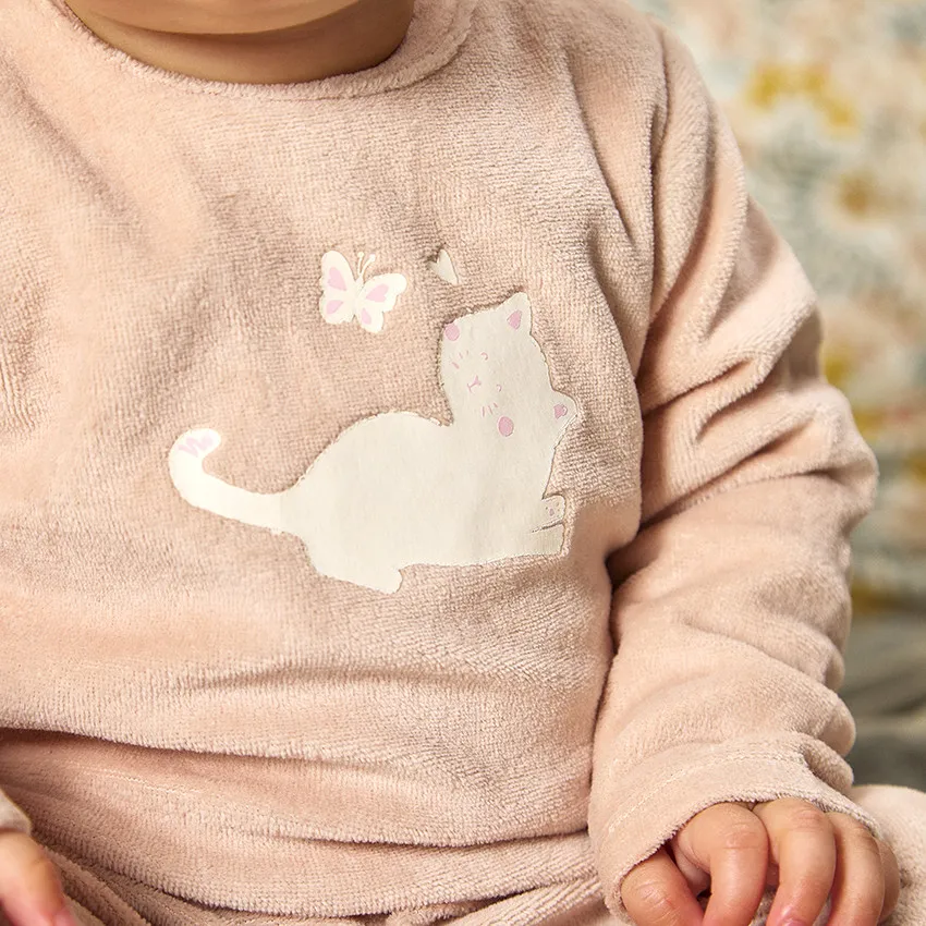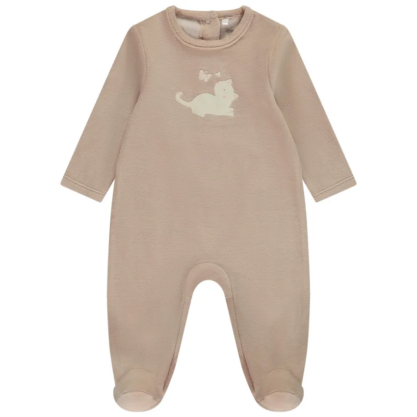 Бархатный комбинезон для малыша с милым котиком по центру — уютный и очаровательный вариант для повседневной носки и сна. Нежный бархатистый материал приятен на ощупь и создаёт ощущение тепла и комфорта.