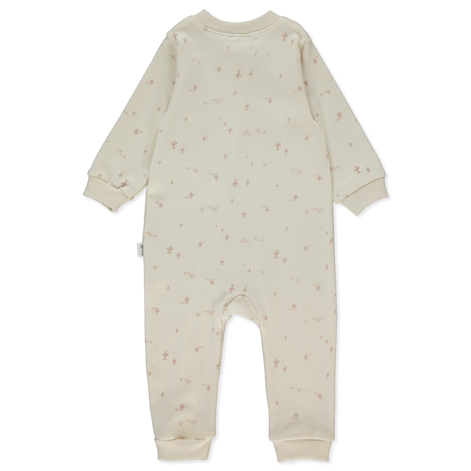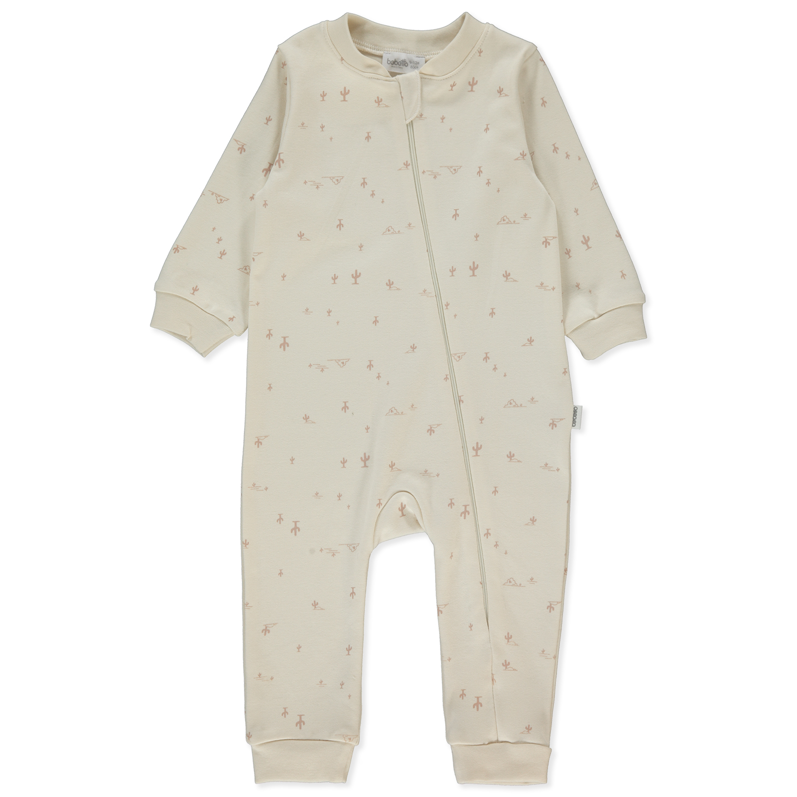 Застёжка по всей длине облегчает переодевание и смену подгузника. Длинные рукава и штанины обеспечивают дополнительный комфорт, а аккуратный нежный принт делает образ спокойным и уютным.