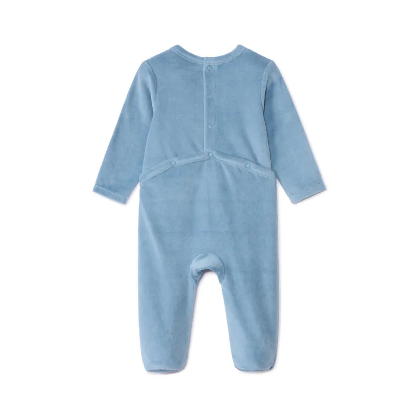 | Уютный велюровый комбинезон для сна. Однотонная модель с круглым вырезом и застёжками на кнопках на спинке и между ножек. Спереди — яркий декоративный принт. С длинными рукавами и закрытыми ножками — для максимального комфорта малыша. |