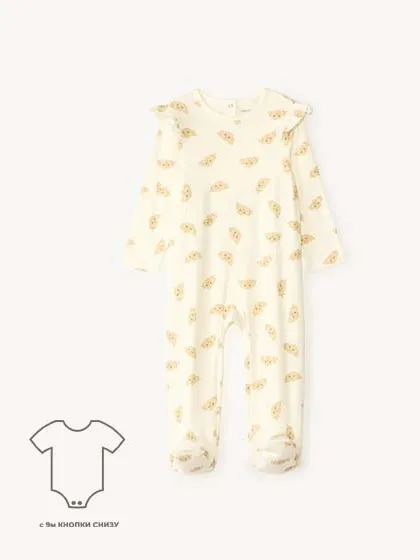 Модели выполнены из мягкого трикотажа и украшены оборками на плечах, а также имеют разный цвет и принт, что делает комплект ещё более милым и практичным.