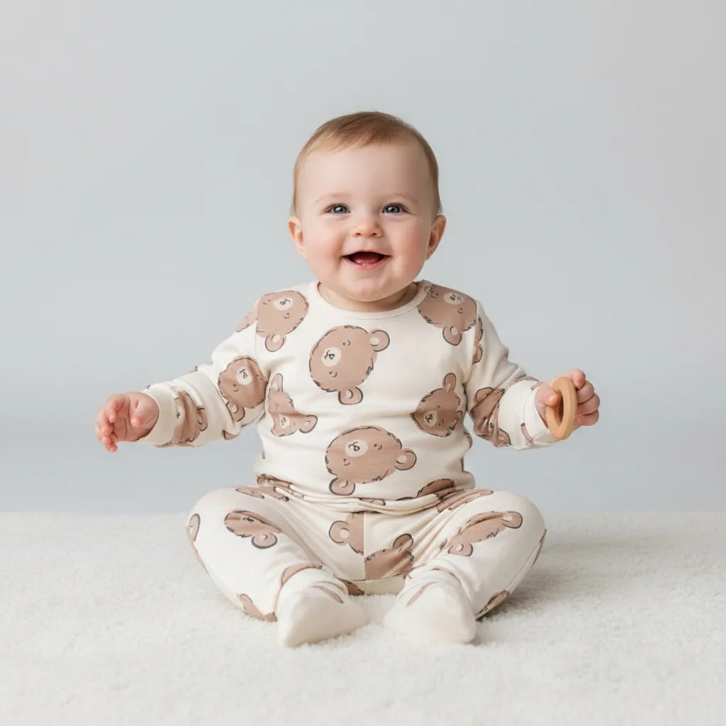 Верх и низ соединяются кнопками по бокам, что помогает пижаме оставаться на месте во время сна.