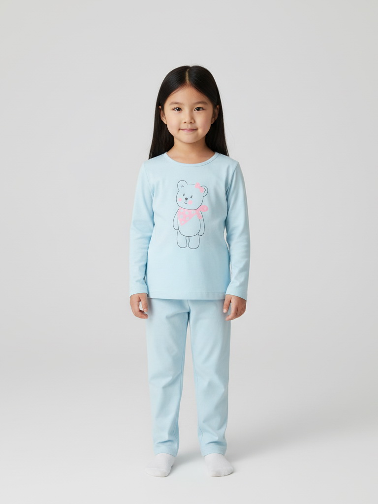 Футболка украшена милым рисунком мишки с блестящими деталями, который добавляет образу нежности и делает пижаму особенно привлекательной.
