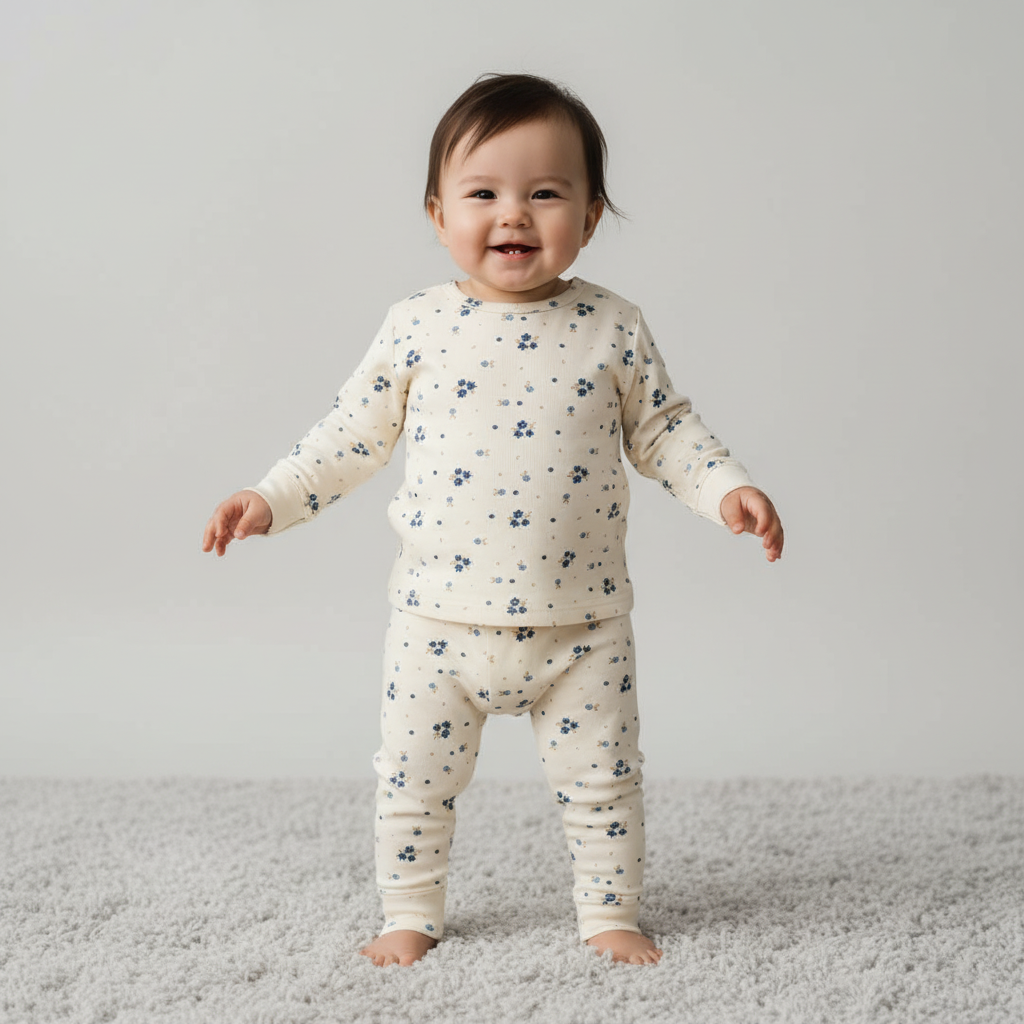 Верх пижамы оснащён застёжкой на кнопках в верхней части спины, что облегчает переодевание. Кнопки-завязки по низу позволяют соединить верх и низ, чтобы одежда не задиралась во время сна или активных движений малыша. Брючки дополнены мягкой эластичной резинкой на поясе, обеспечивающей удобную посадку без давления на животик. Практичная и продуманная модель идеально подойдёт для сна и отдыха, даря малышке комфорт и уют каждый день.