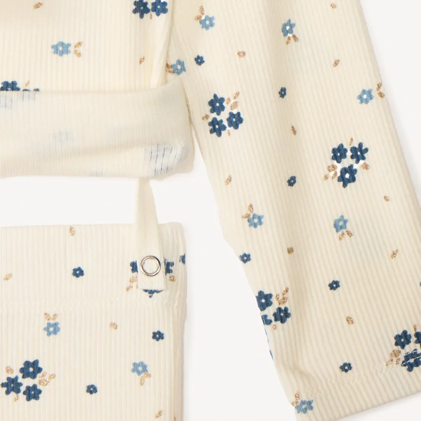 Верх пижамы оснащён застёжкой на кнопках в верхней части спины, что облегчает переодевание. Кнопки-завязки по низу позволяют соединить верх и низ, чтобы одежда не задиралась во время сна или активных движений малыша. Брючки дополнены мягкой эластичной резинкой на поясе, обеспечивающей удобную посадку без давления на животик. Практичная и продуманная модель идеально подойдёт для сна и отдыха, даря малышке комфорт и уют каждый день.