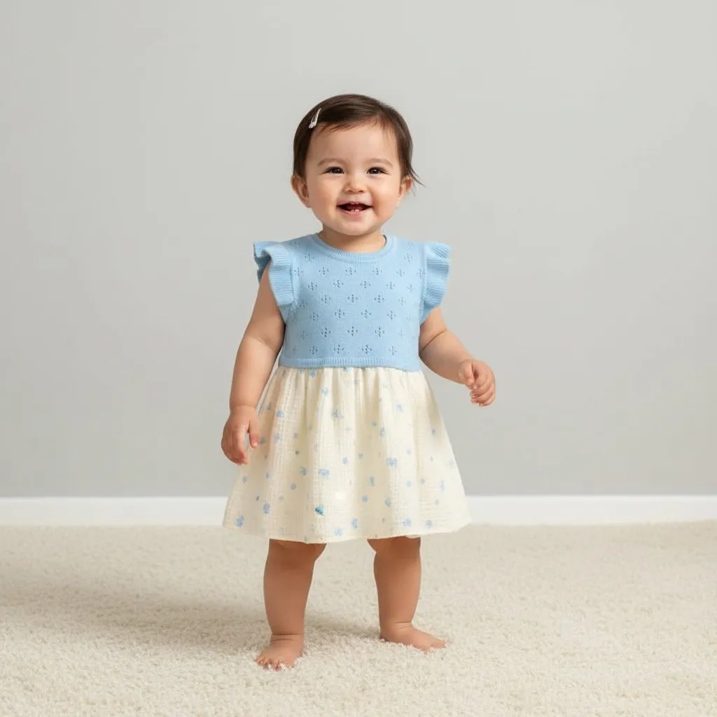 Вязаное платье для малышки ORCHESTRA — нежная и стильная модель для особых моментов и повседневных прогулок. Платье выполнено из 100% хлопка, мягкого и приятного к коже ребёнка. Элегантные ажурные рукава придают образу лёгкость и изящность, а пуговицы по всей длине на спинке делают переодевание удобным и быстрым. Идеальный вариант для создания милого и аккуратного образа малышки.