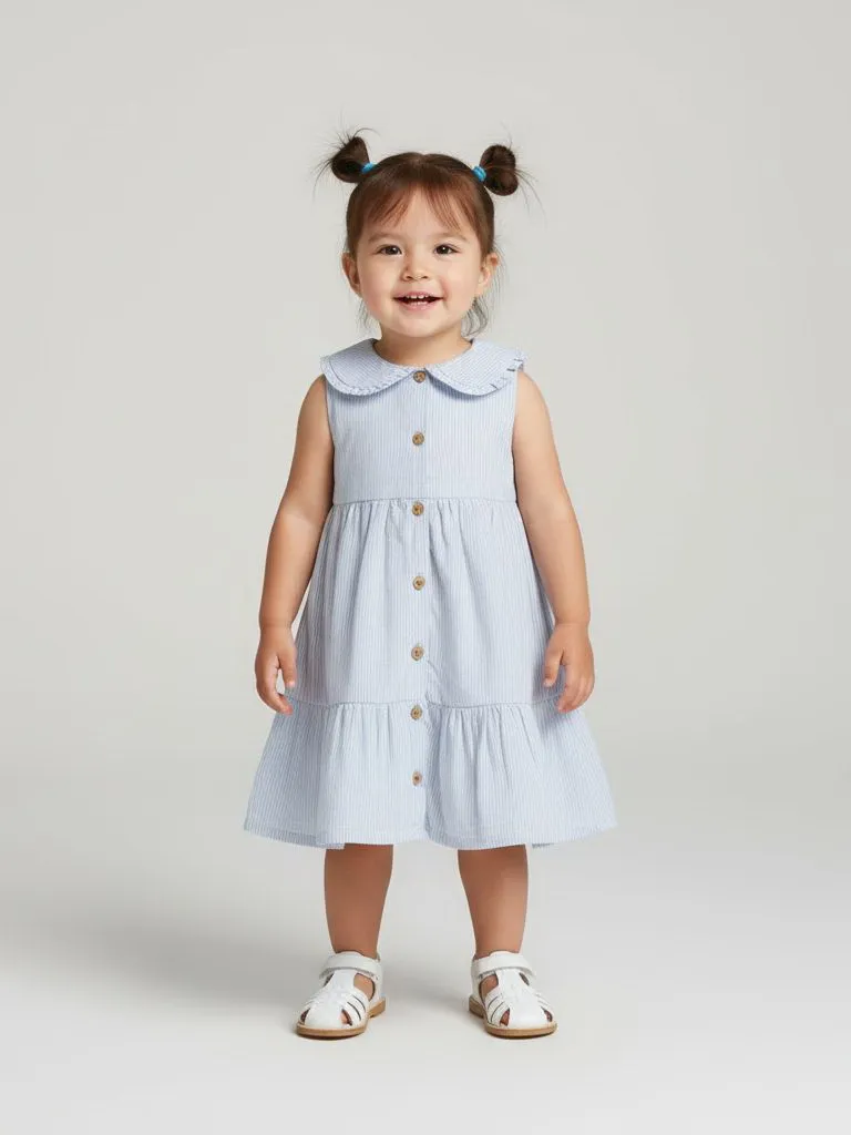Нежное платье для малышки в красивом голубом цвете станет прекрасным вариантом для тёплой погоды и прогулок. Модель выполнена из мягкого хлопка с подкладкой, благодаря чему ткань приятна к телу и обеспечивает комфорт в течение всего дня.
