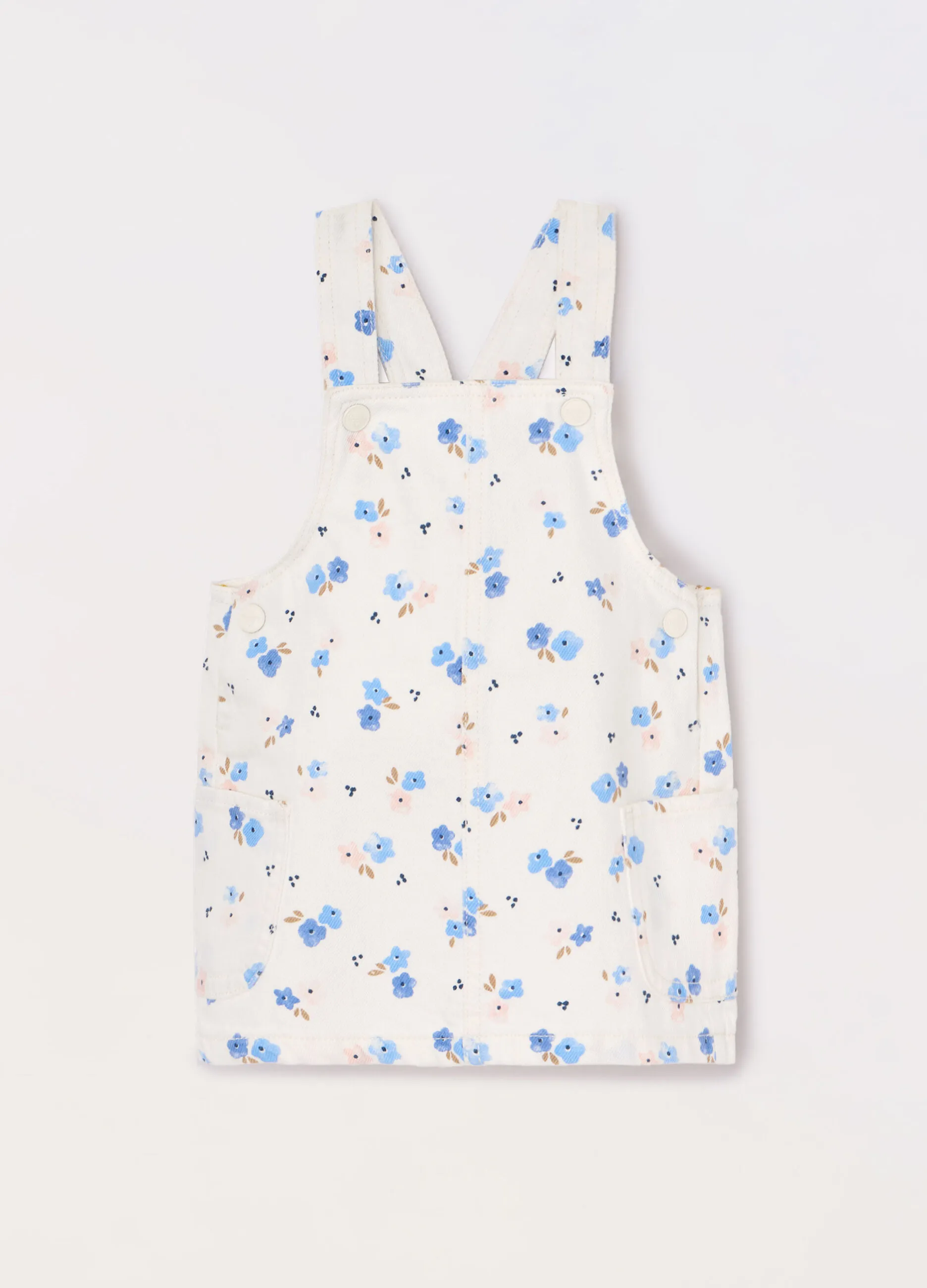 Очаровательный детский сарафан с цветочным принтом – идеальный выбор для теплых дней. Легкий и удобный крой обеспечивает комфорт при носке, а регулируемые бретели на кнопках позволяют подгонять посадку по росту ребенка. Кармашки по бокам добавляют практичности и стильного акцента. Нежный кремовый оттенок с голубыми цветами делает сарафан универсальным и прекрасно сочетаемым с разными футболками и блузками. Отличный вариант для прогулок, праздников и летнего отдыха!