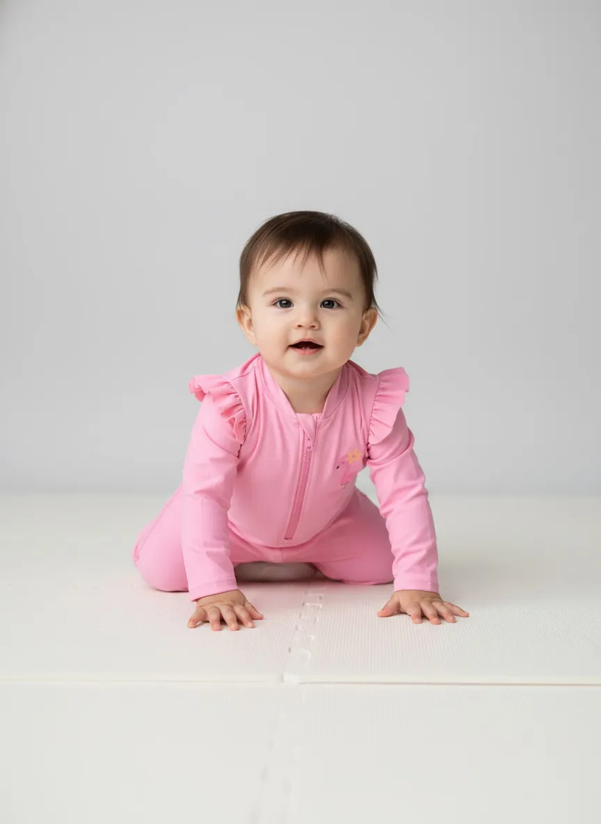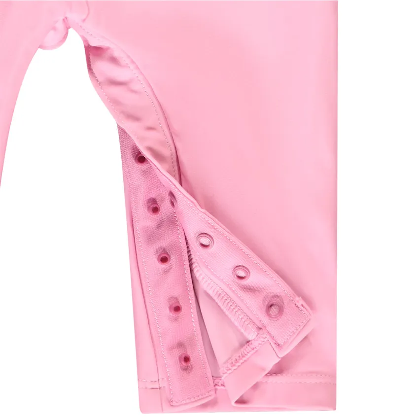 Комбинезон для плавания Orchestra для малышки — удобная и практичная модель для пляжа и активных игр в воде. Длинные рукава помогают лучше защищать кожу ребёнка от солнца, а оборки на плечах придают образу нежный и милый акцент. Застёжка-молния по центру облегчает переодевание, а кнопки-застёжки внизу на ножках позволяют быстро сменить подгузник. Состав: 85% полиэстер / 15% эластан — эластичный, лёгкий и быстросохнущий материал, обеспечивающий комфорт во время купания и игр у воды.