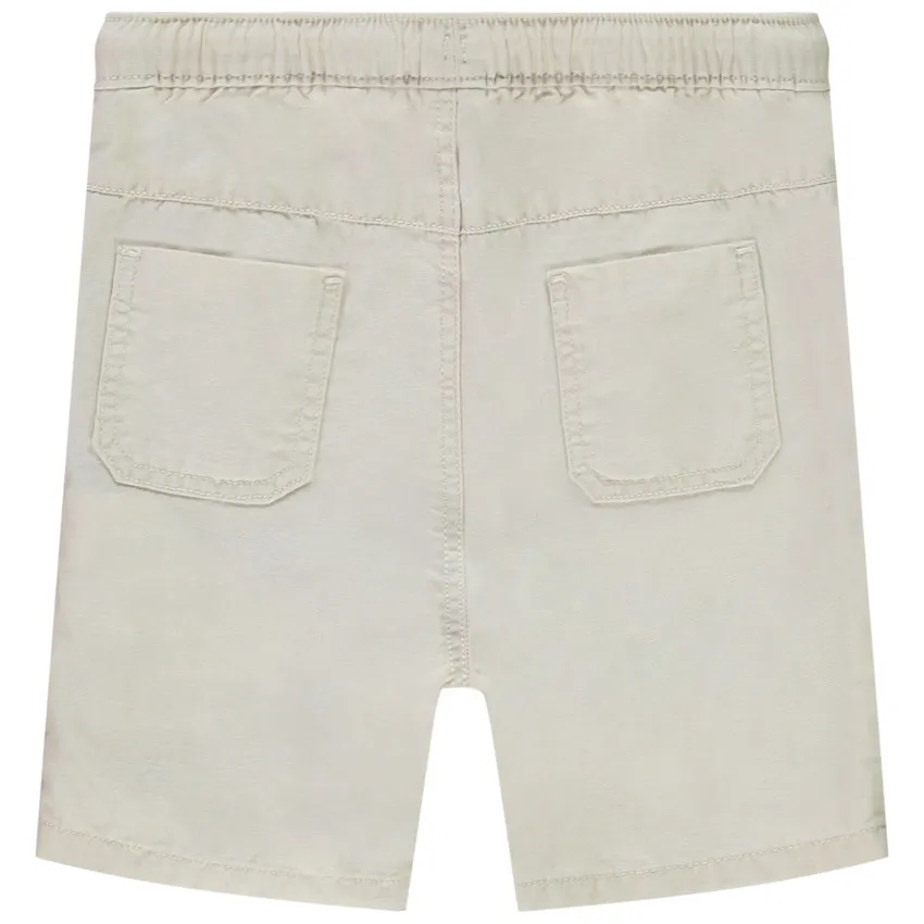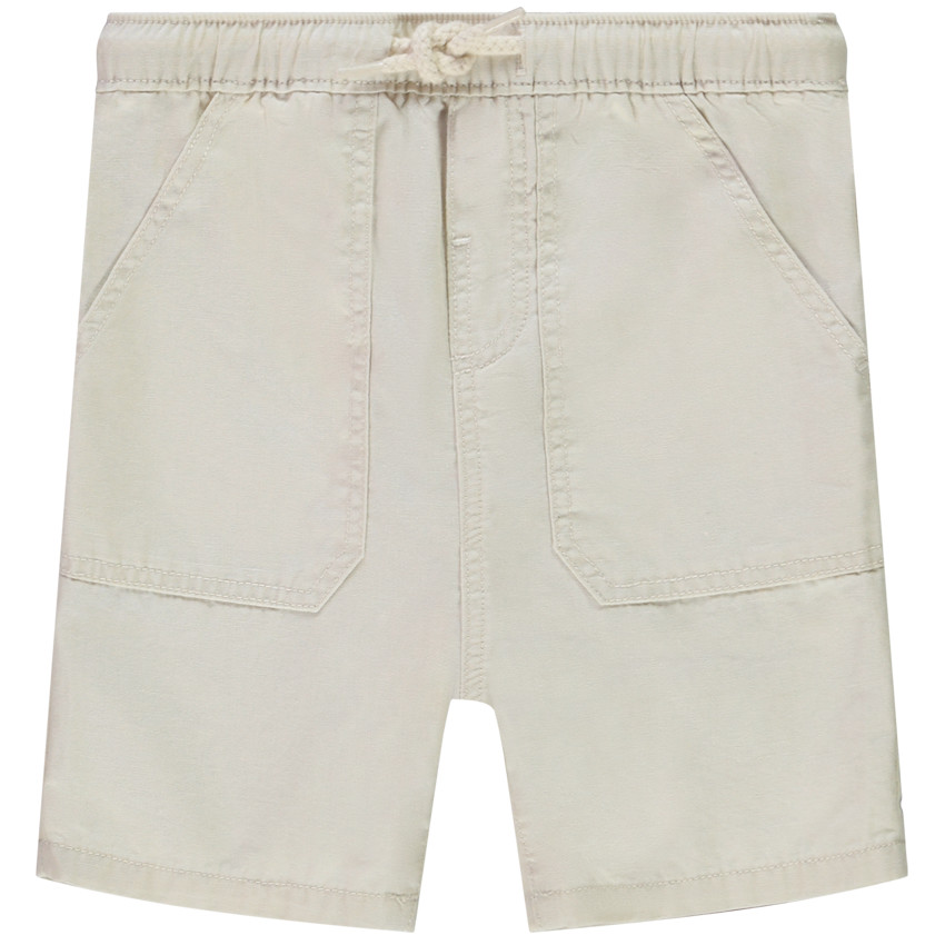 Удобные и практичные бежевые шорты для мальчика, выполнены из лёгкой хлопковой ткани. Оснащены эластичным поясом с регулируемыми завязками и двумя глубокими боковыми карманами. Отличный вариант для прогулок и активных игр в тёплую погоду.