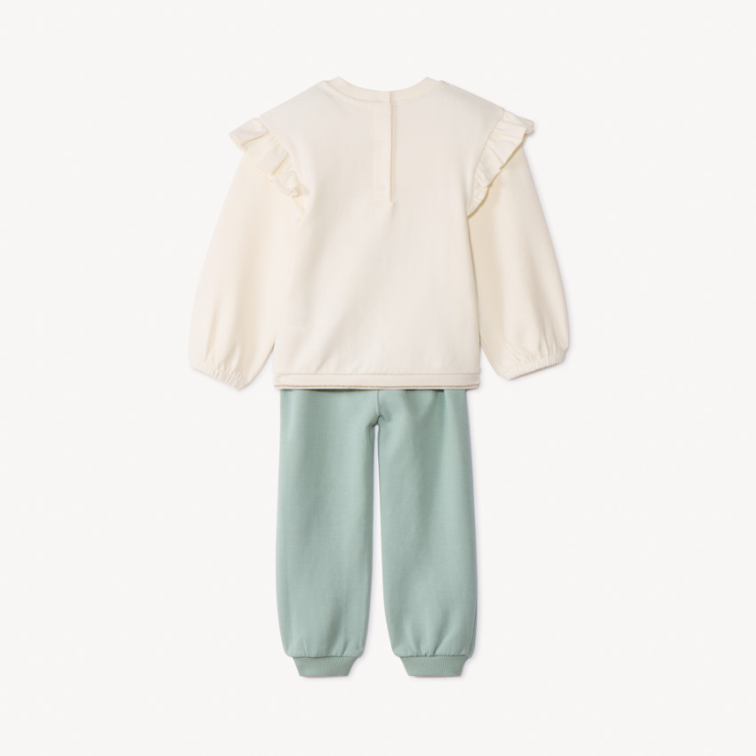 Брюки однотонные, с эластичной талией и контрастным шнурком с золотистым люрексом, два боковых кармана, манжеты в рубчик.