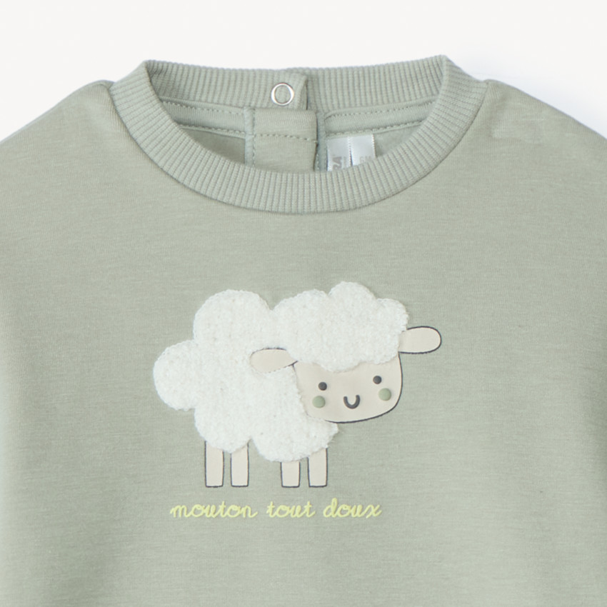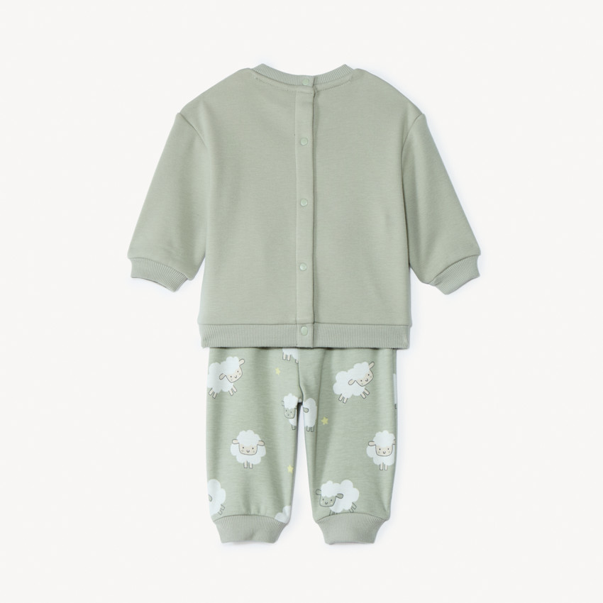 | Спортивный костюм для малыша — мягкий, уютный и идеально подходящий для активных и спокойных дней. Нежный мятно-зелёный оттенок смотрится свежо и нейтрально, а забавный принт с овечками добавляет образу игривости и тепла. Верх выполнен в виде свитшота с мягкими манжетами и объёмной аппликацией, а удобная застёжка на кнопках по спинке облегчает переодевание. Брюки на комфортной резинке не сковывают движения и надёжно держатся на талии. Внутренняя сторона костюма — мягкая, нежная, созданная для максимального комфорта кожи малыша. Прекрасный комплект на прогулки, игры и домашние объятия — тёплый, практичный и очень милый. |