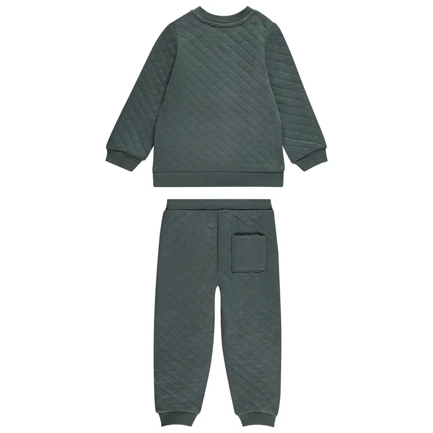 Уютный и практичный демисезонный спортивный костюм для малыша, идеально подходящий для активных прогулок и повседневной носки. Мягкий трикотаж приятен к телу и не сковывает движения. Верх дополнен застёжками на кнопках на плечах для удобства переодевания и карманом-кенгуру спереди. Ребристые манжеты и нижний край обеспечивают аккуратную посадку.