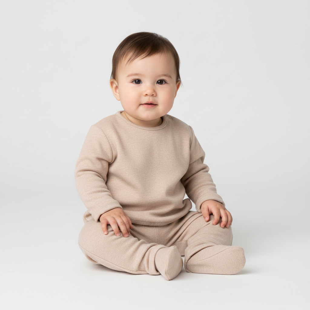 Удобный комплект из мягкого трикотажа для малышей маленького размера — идеально подходит для дома, прогулок и активных игр. Лонгслив с круглым вырезом и застёжкой на кнопках с перламутровым эффектом удобно надевать. Длинные брюки с эластичным поясом и контрастным шнурком обеспечивают комфортную посадку и свободу движений.