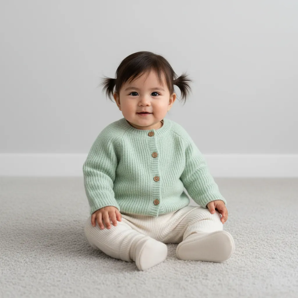 Кардиган выполнен в универсальном стиле и легко сочетается с платьями, боди, брюками и комбинезонами. Он подходит для демисезонного периода и использования в помещении, делая образ малышки уютным и аккуратным.