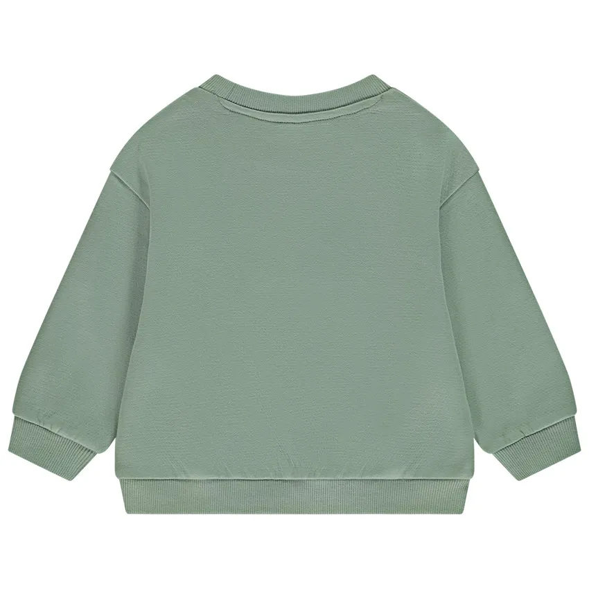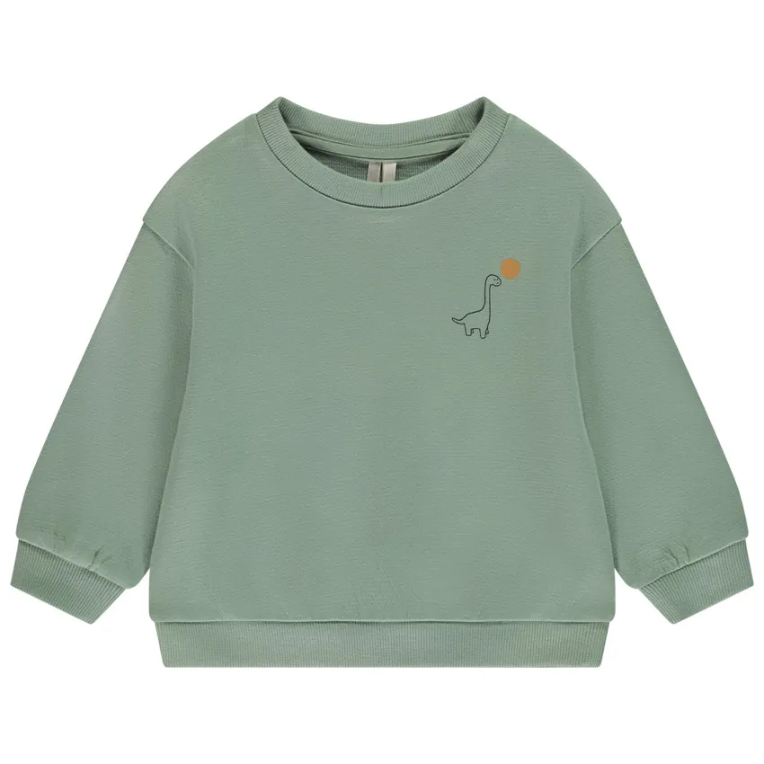 | Свитшот из мягкого футера в однотонном цвете с ярким контрастным принтом динозавра на передней части. Модель выполнена с круглым вырезом, манжетами и нижней кромкой из эластичного рибаны для комфортной посадки. Спинка полностью однотонная. Отличный вариант для повседневных образов и активных прогулок. |