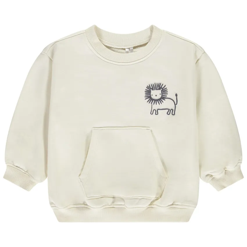Свитшот из мягкого футера в однотонном цвете. На груди — контрастный объёмный фантазийный принт, создающий яркий акцент. Вырез оформлен красной рубчатой отделкой, а спереди расположен удобный карман-«кенгуру». Манжеты и нижний край выполнены из эластичного рибаны для комфортной посадки. Спинка полностью однотонная.