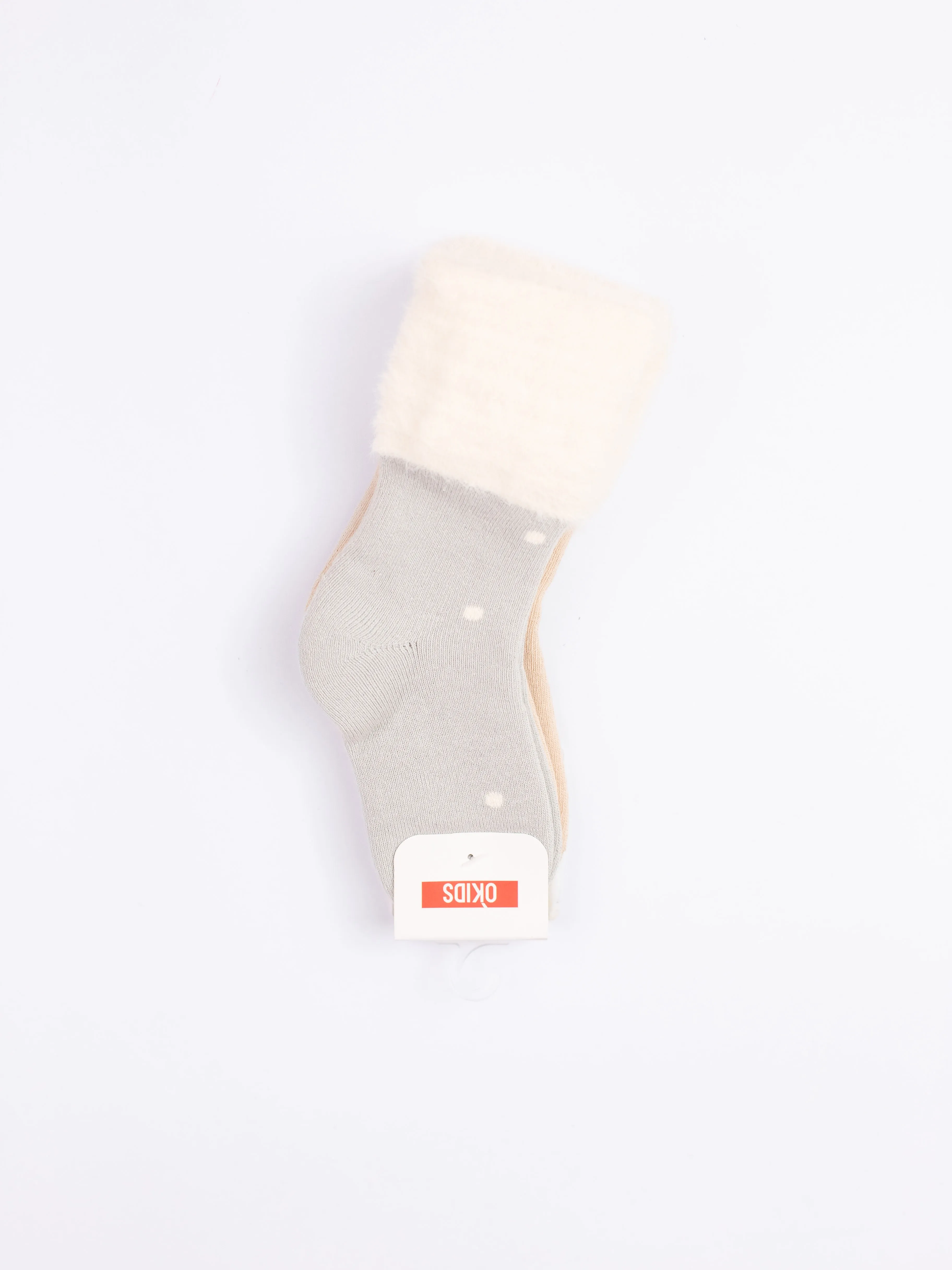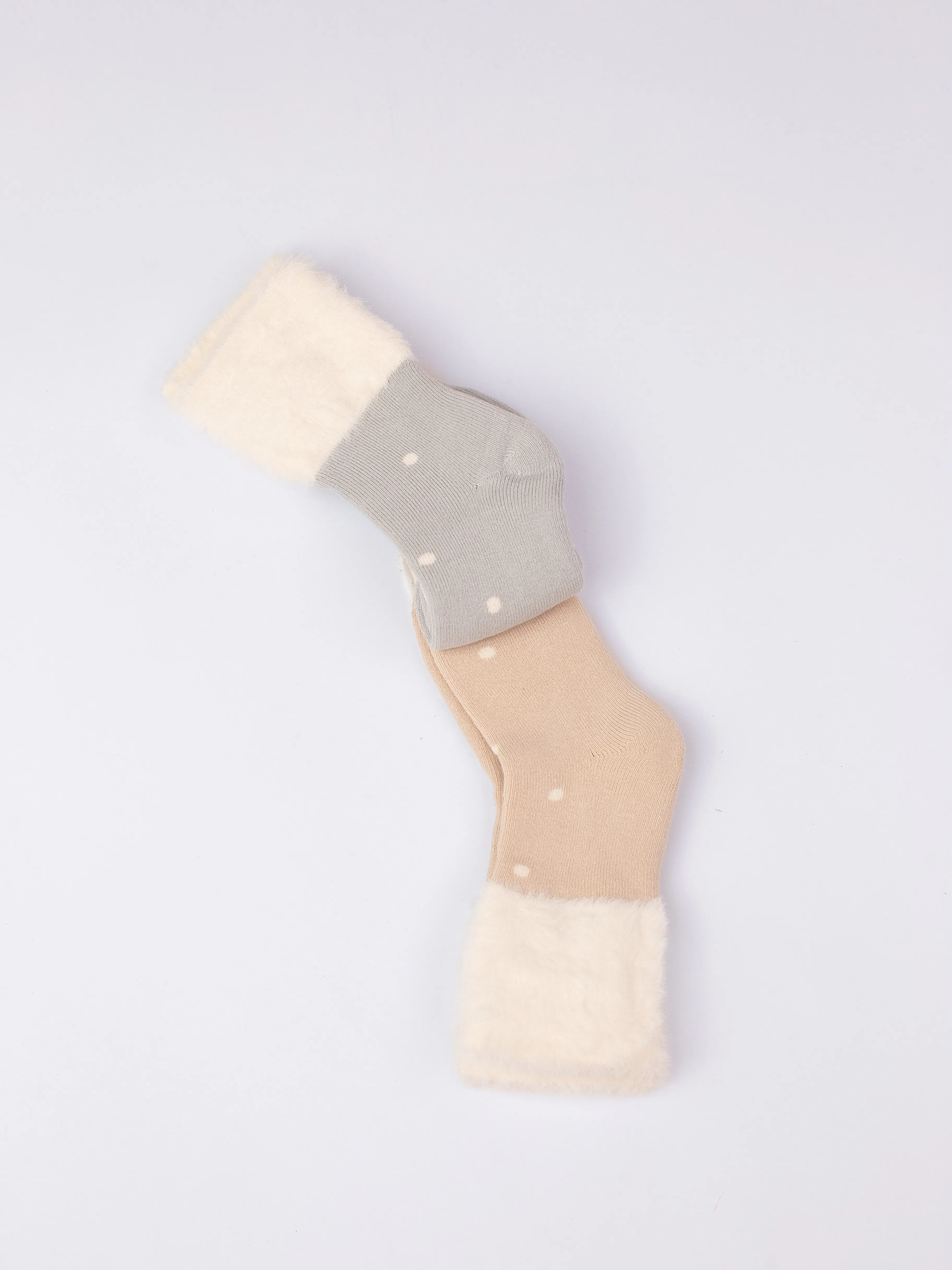 Детские зимние носки для малыша изготовлены из мягкого трикотажа с высоким содержанием хлопка (75%), что обеспечивает тепло и комфорт даже в холодное время года. Специальные вставки на стопе с противоскользящим эффектом помогают малышу уверенно делать первые шаги, а рельефная текстура дополнительно оказывает лёгкий массажный эффект. Эластан в составе (2%) делает носочки эластичными и удобными в носке, а полиэстер (23%) добавляет прочности и сохраняет форму после стирки.