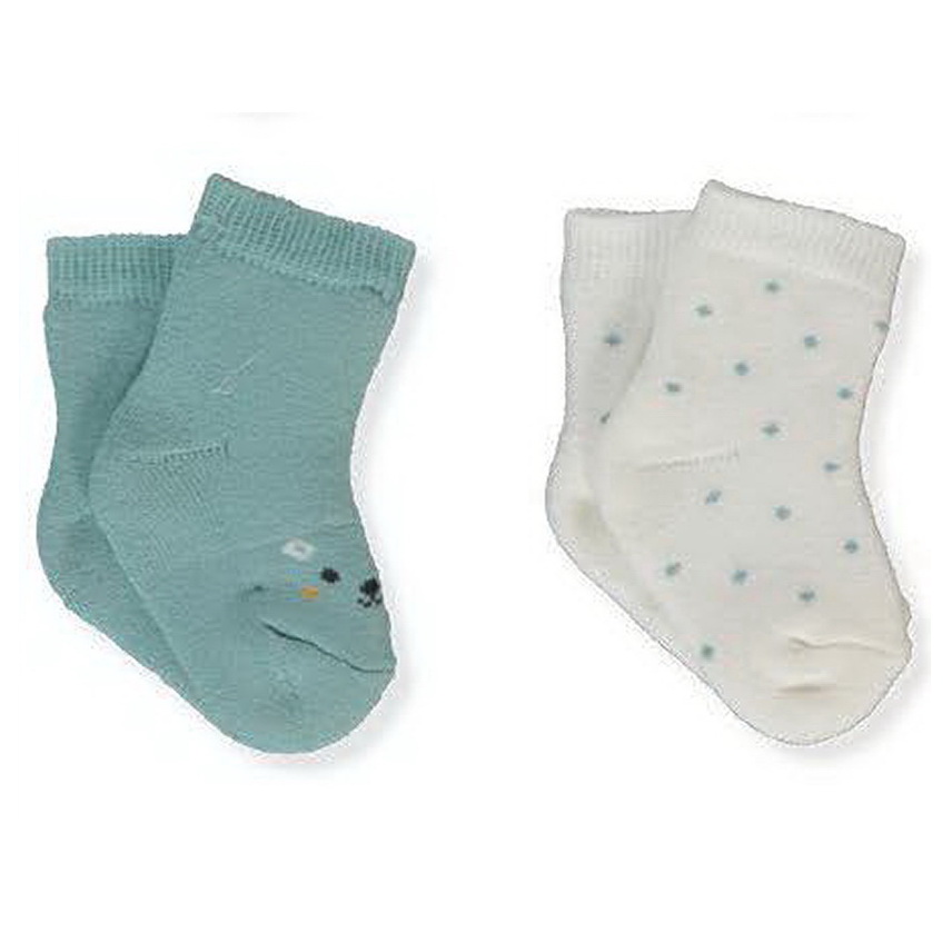 Набор из 2 пар носочков для малышей. Одна пара украшена забавным принтом с улыбающимся личиком, вторая — однотонная с милыми крапинками. Мягкие, эластичные и приятные к коже, подойдут для повседневного ношения.