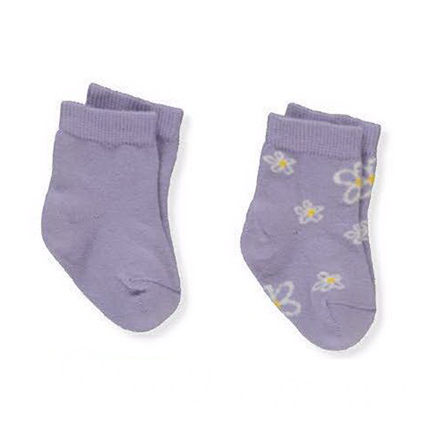 Набор из 2 пар детских носков, выполненных из мягкой и приятной к телу хлопковой смеси. В комплект входит одна однотонная пара и одна пара с нежным принтом в виде цветочков. Эластичная резинка мягко фиксирует носочки на ножке, обеспечивая комфорт в течение всего дня.