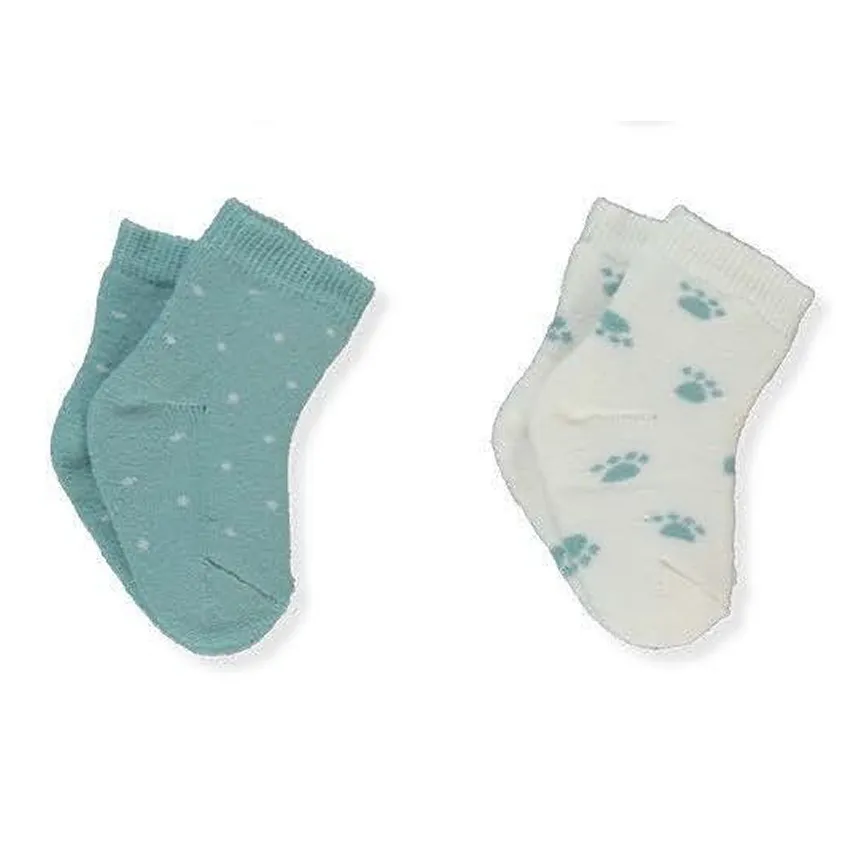 Набор из 2 пар носков для малышей. В комплект входит одна пара однотонных носочков в крапинку и одна пара с принтом лапки. Мягкие, эластичные и удобные — идеально подойдут для повседневной носки.
