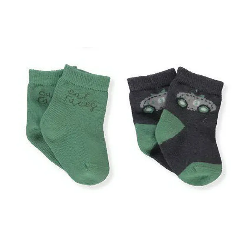 | Набор из 2 пар носков для малышей. Одна пара — однотонная с милой надписью, вторая украшена ярким рисунком машинки. Мягкий и приятный к телу материал обеспечивает комфорт в течение всего дня. |