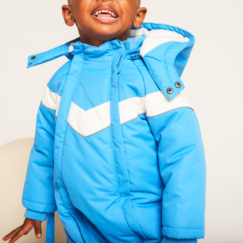 Тёплый комбинизон для малыша, выполненный из 100% полиэстера — лёгкий, водоотталкивающий и прочный. Модель оснащена съёмными носочками и капюшоном для удобства, а центральная молния облегчает одевание. Варежки на рукавах можно легко раскрыть, чтобы обеспечить больший комфорт для малышей постарше. Идеальный выбор для активных прогулок в холодное время года.