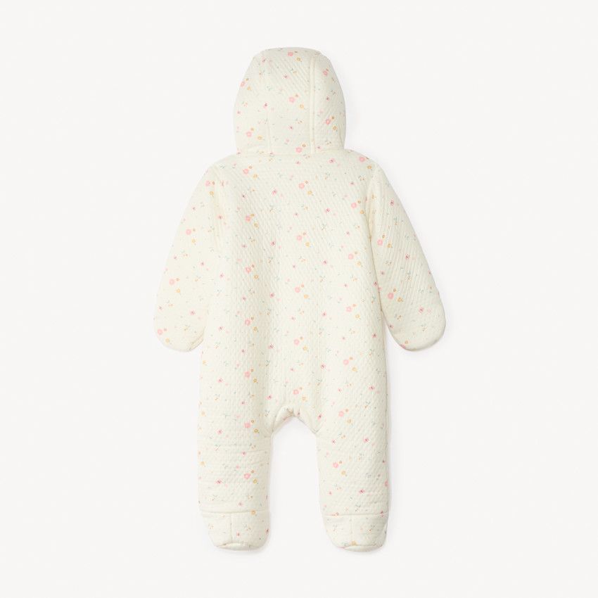 Конструкция модели адаптирована под возраст ребёнка. Для малышей от рождения до 12 месяцев предусмотрены вшитые рукавички и закрытые ножки, обеспечивающие максимальное тепло. Для детей от 12 до 23 месяцев комбинезон оснащён съёмными рукавичками на кнопках, эластичными манжетами на рукавах и манжетами на щиколотках, что удобно для более активных малышей.