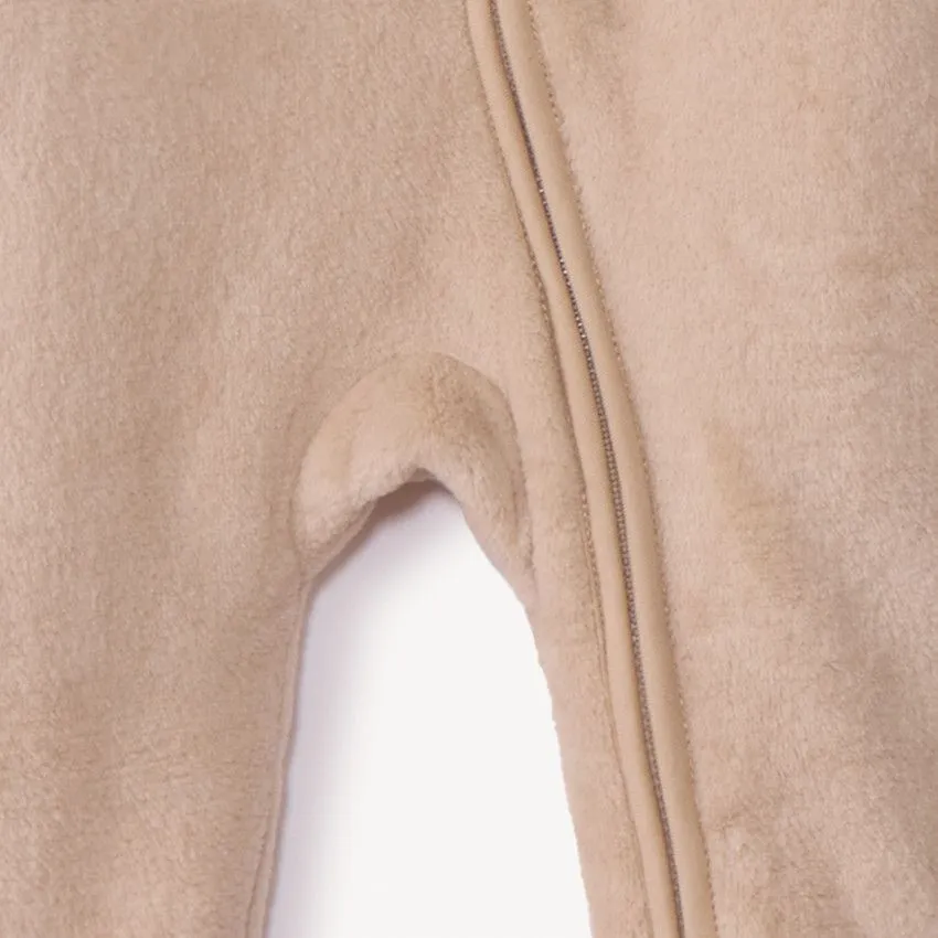 Комбинезон выполнен из 100% полиэстера с верхом из нежного искусственного меха и трикотажной подкладкой. Материалы хорошо сохраняют тепло, мягкие на ощупь и подходят для чувствительной кожи ребёнка, обеспечивая комфорт в течение всего дня.