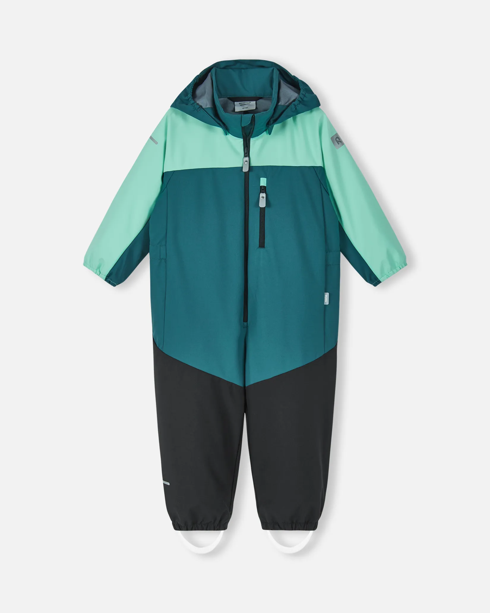 Этот softshell-комбинезон станет надёжным выбором для активных прогулок в тёплую и переменчивую погоду. Лёгкий трёхслойный материал защищает от ветра и лёгкого дождя, оставаясь при этом дышащим и комфортным для носки в течение всего дня. Гладкая изнаночная сторона облегчает надевание и делает комбинезон подходящим даже для более тёплых условий. Усиленные зоны и прочная вставка в области сиденья повышают износостойкость, а проклеенный шов на спинке обеспечивает дополнительную защиту от влаги. Длинная молния упрощает переодевание, съёмный капюшон, регулируемая талия, эластичные манжеты и низ штанин подстраиваются под рост ребёнка. Светоотражающие детали повышают видимость в условиях недостаточного освещения.