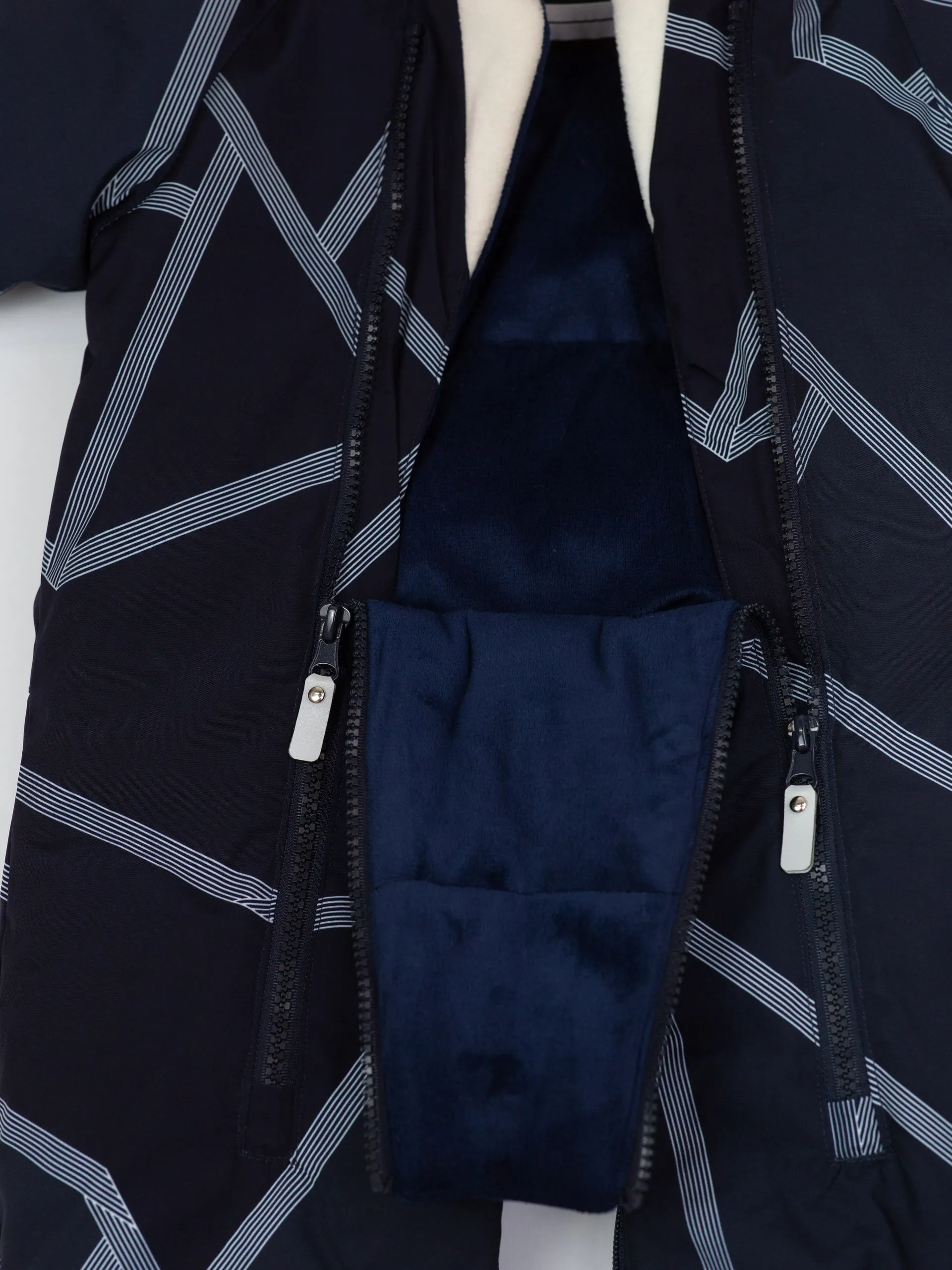 • Модель 2 в 1 — комбинезон легко трансформируется в конверт. Качественная фурнитура и клапаны на рукавах и штанинах помогают сохранять тепло.