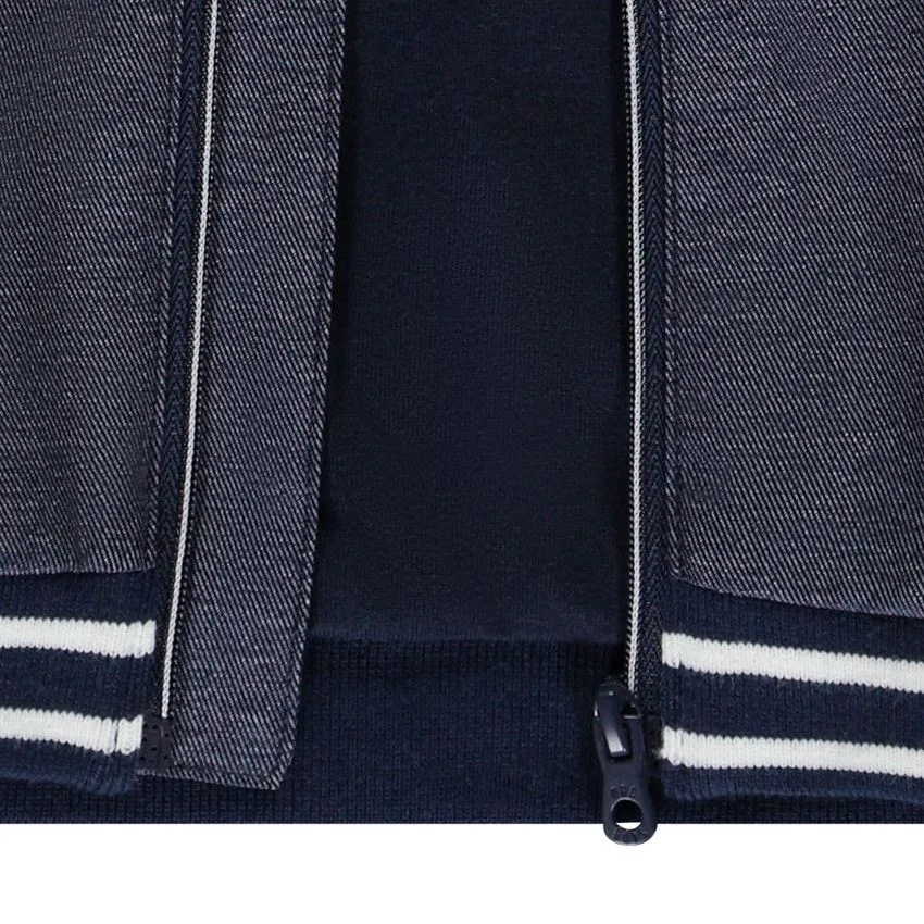 Трикотажные манжеты на рукавах и нижний край в рубчик с белыми полосками обеспечивают хорошую посадку и помогают защитить от ветра. Внешний слой выполнен из 100% полиэстера, а подкладка из смеси 65% полиэстера и 35% хлопка приятна к телу и обеспечивает комфорт при носке.