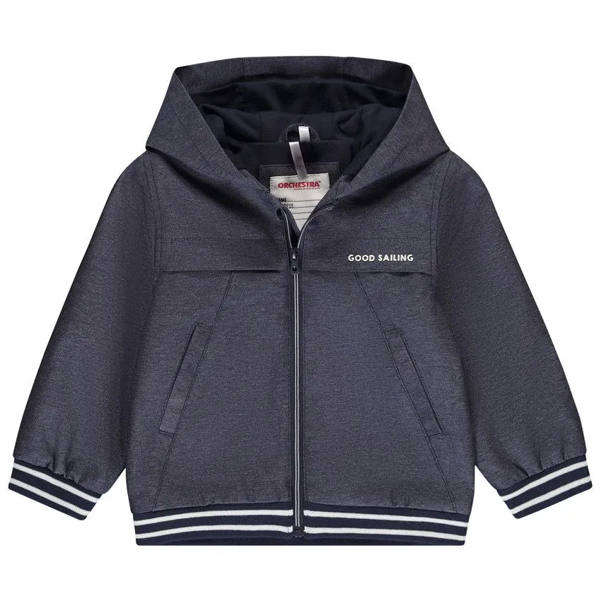Ветровка Orchestra для малыша — удобная и практичная модель для прогулок в прохладную погоду. Ветровка дополнена капюшоном, застёгивается на молнию по всей длине спереди и имеет защиту подбородка для дополнительного комфорта. Спереди расположены два прорезных кармана.