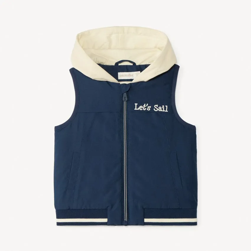 Утеплённый жилет Orchestra для малыша — удобная и практичная модель для прохладной погоды. Жилет дополнен напечатанной надписью на левой стороне груди, которая придаёт изделию стильный акцент. Спереди расположены два регланных кармана, удобных для хранения мелочей. Модель выполнена из 100% полиэстера — лёгкого и практичного материала, который хорошо сохраняет тепло и подходит для активных прогулок.
