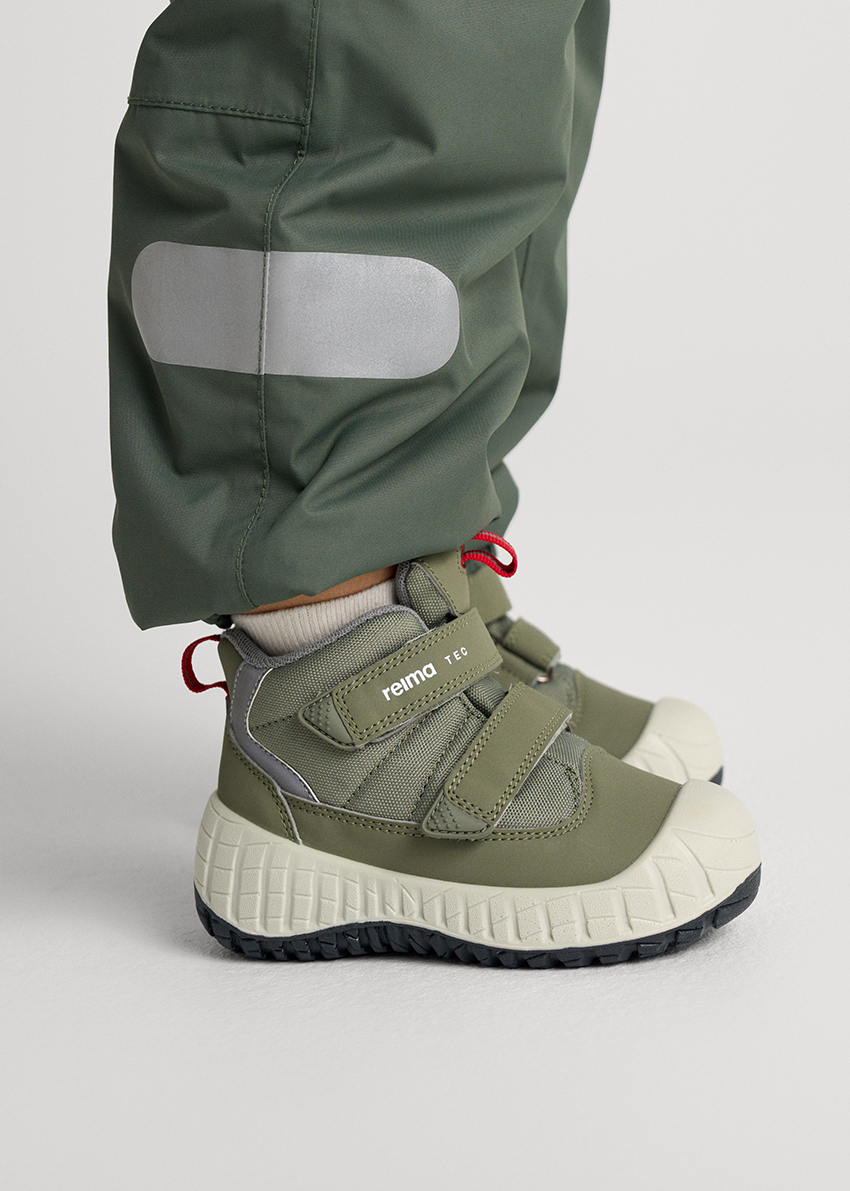Эта высококачественная обувь изготовлена без использования материалов животного происхождения и идеально подходит для мягкой осенней и зимней погоды благодаря легкости и защитным свойствам. Водонепроницаемая вставка защищает всю нижнюю часть, а гибкая подошва обеспечивает мягкость каждого шага. Съемные стельки из EVA в этих стильных ботинках из материала Reimatec дарят еще больше тепла и комфорта. Благодаря застежке-липучке обувь всегда прекрасно сидит, а особый рисунок Happy Fit помогает подобрать правильный размер.