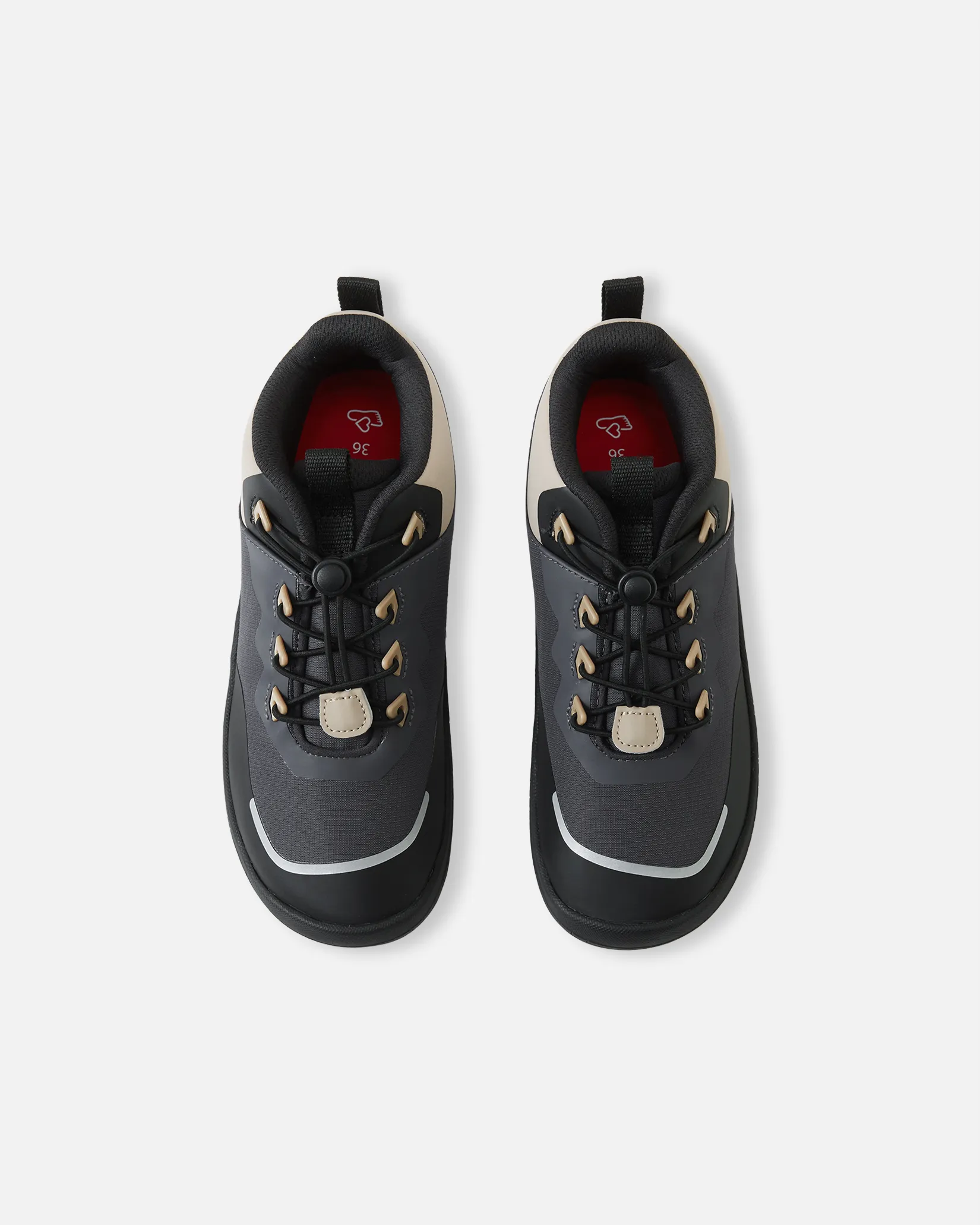 Откройте целый новый мир приключений с ботинками Barefoot Sankari. Эти ReimaTec ботинки поддерживают естественную постановку стопы благодаря нулевому перепаду и гибкой подошве, а широкая колодка даёт пальцам полную свободу. Эластичная шнуровка позволяет легко и быстро надеть обувь, а водонепроницаемая мембрана защищает от капризов погоды. Светоотражающие детали повышают видимость, а резиновая подошва с хорошим сцеплением обеспечивает устойчивость на любых поверхностях. Стельки Happy Fit делают выбор размера простым и увлекательным!