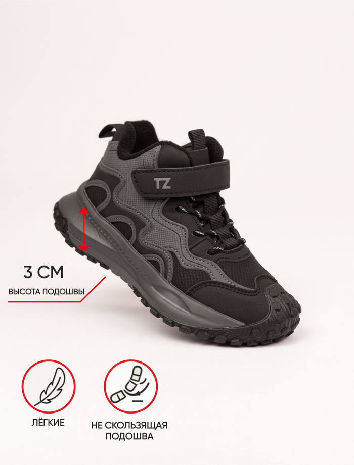 Комбинированная застёжка на липучке и шнурках обеспечивает хорошую фиксацию и удобство при обувании.