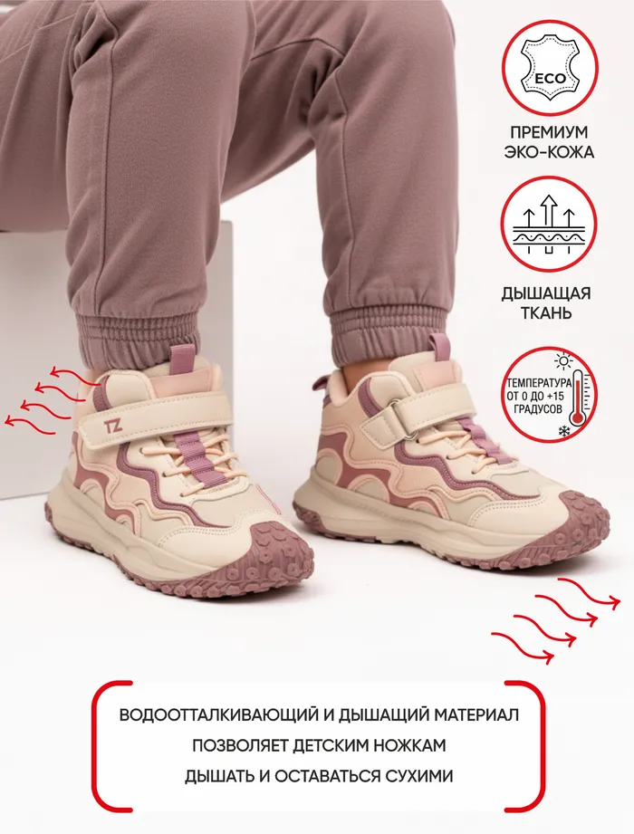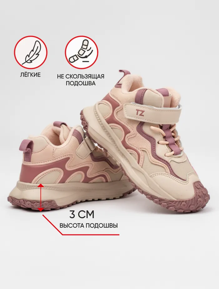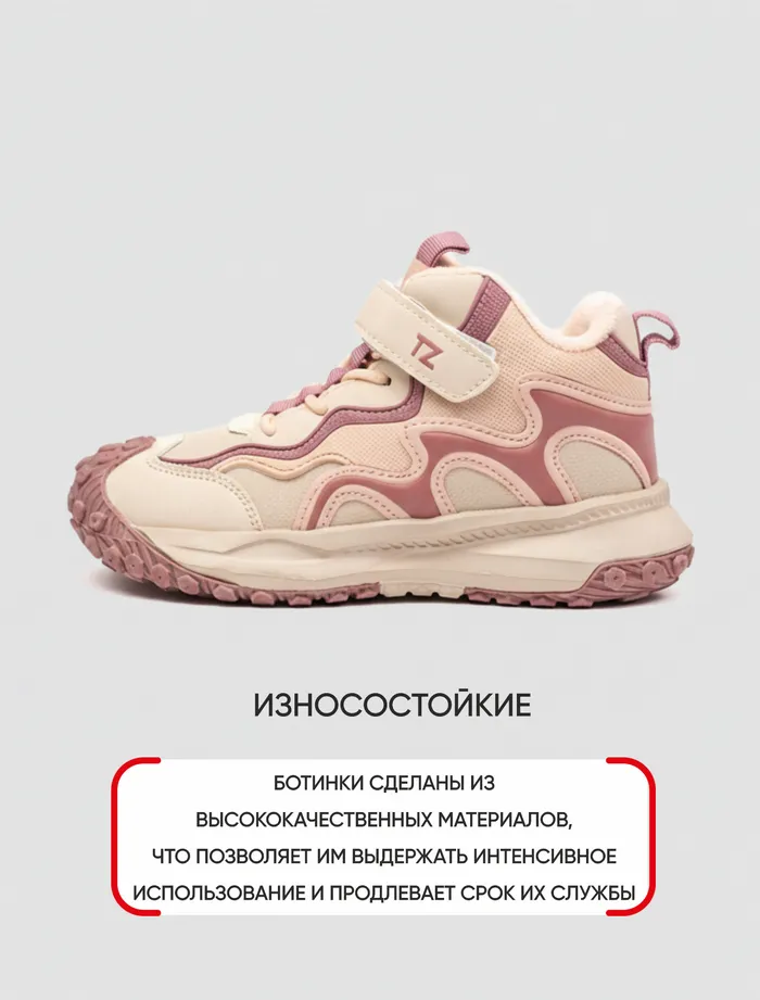 Комбинированная застёжка на липучке и шнурках обеспечивает хорошую фиксацию и удобство при обувании.