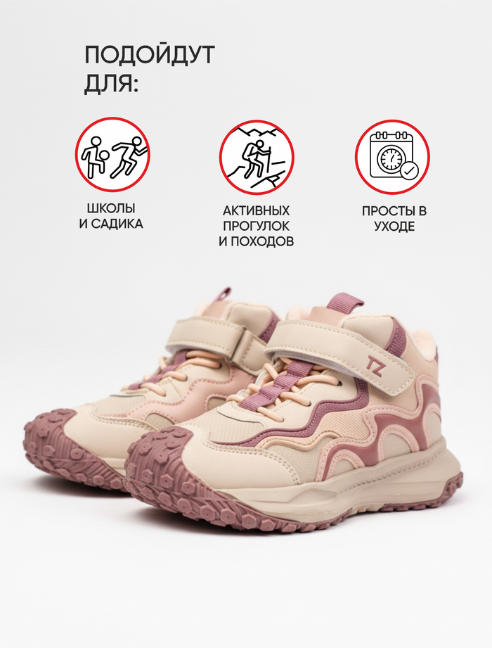 Комбинированная застёжка на липучке и шнурках обеспечивает хорошую фиксацию и удобство при обувании.
