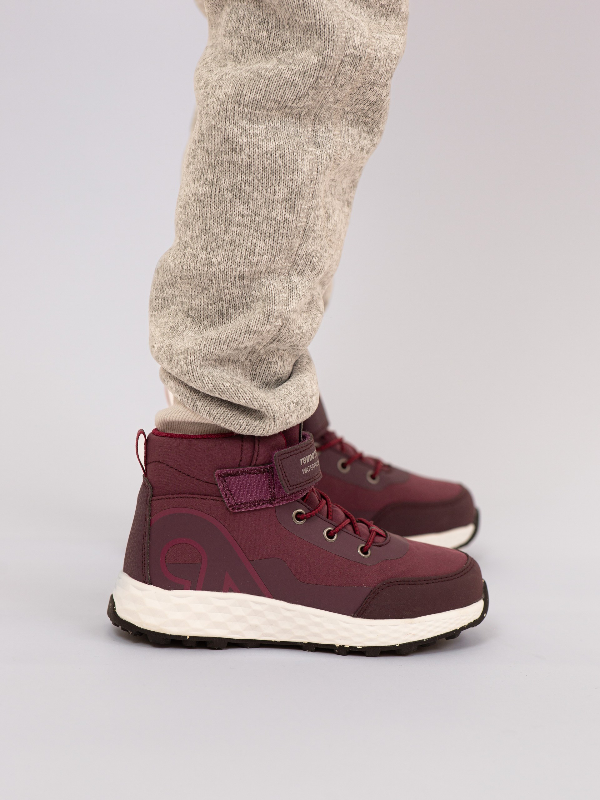 Водоотталкивающая мембрана в верхней части сохраняет ноги сухими. Гибкая и легкая подошва обеспечивает хорошее сцепление с дорогой, когда дети находятся в движении, а эластичная шнуровка обеспечивает плотную посадку. Светоотражающие детали сделают ребенка лучше заметным в темноте. Съемные стельки с принтом Reima Happy Fit помогут легко подобрать правильный размер. Модель не содержит фторуглерода и материалов животного происхождения, содержит переработанные сертифицированные материалы.