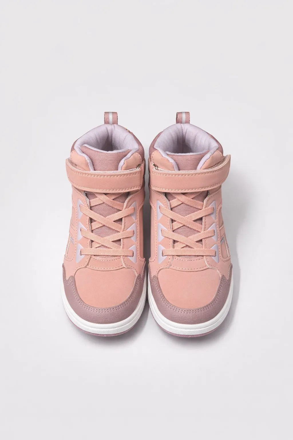 Модель фиксируется с помощью липучки и эластичных шнурков-резинок, что позволяет быстро надевать и снимать обувь. Защитный носок предотвращает повреждения и продлевает срок службы ботинок. Светоотражающие полоски на боковой части повышают видимость ребёнка в тёмное время суток, обеспечивая дополнительную безопасность.