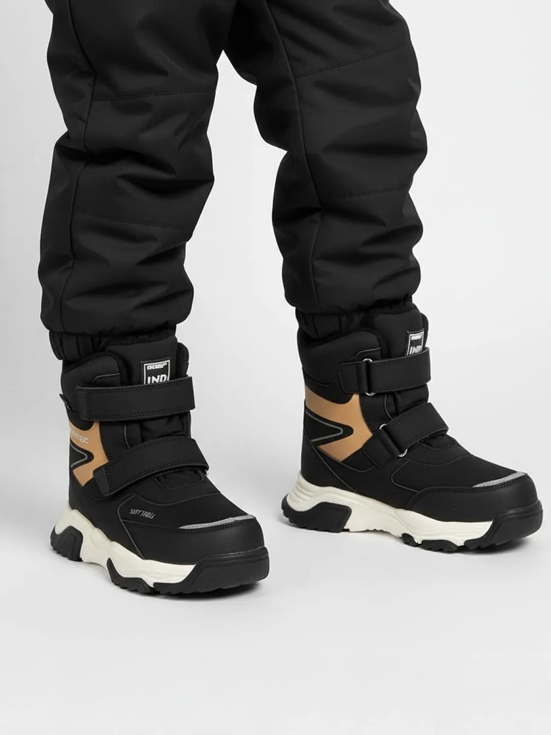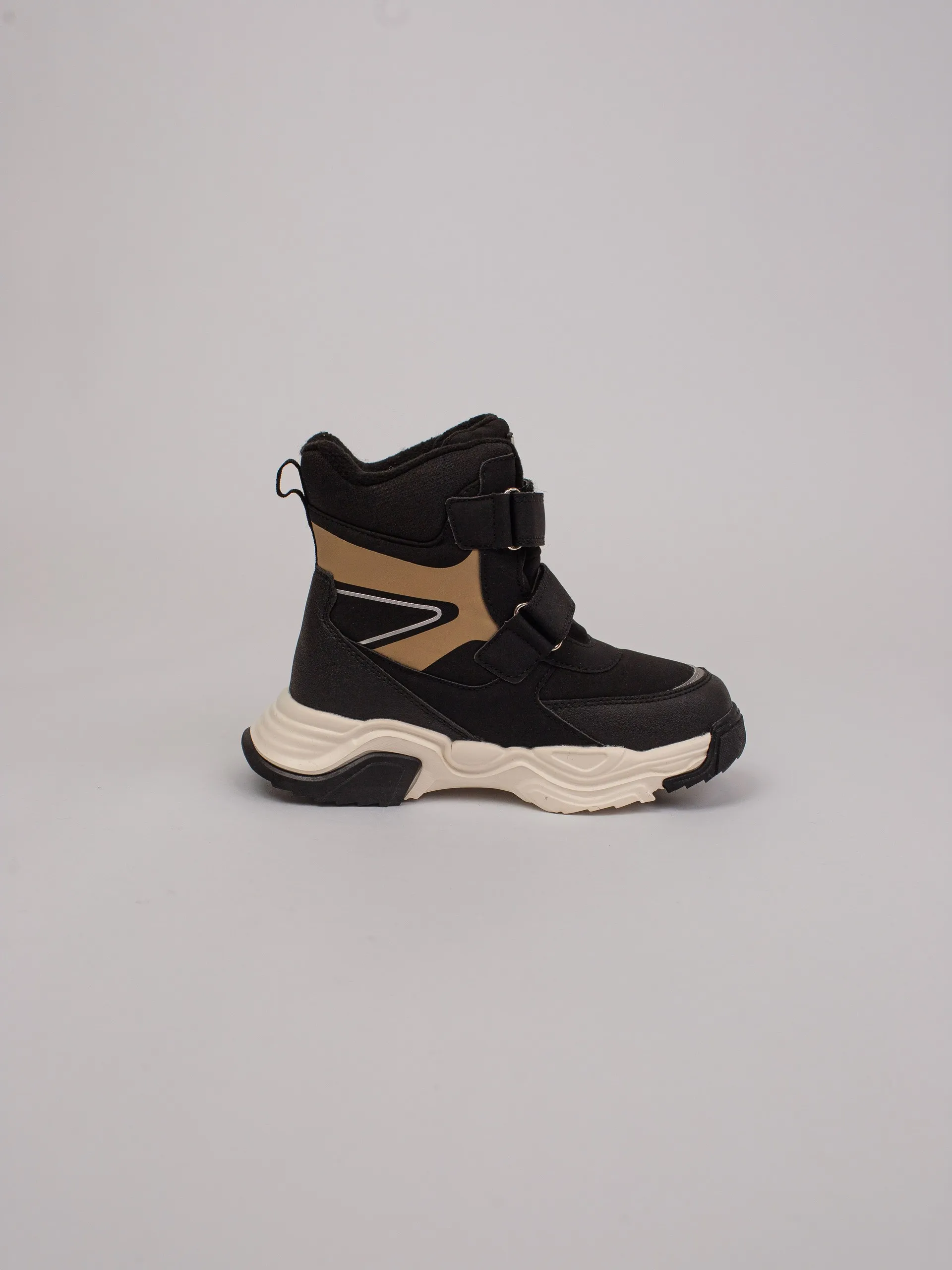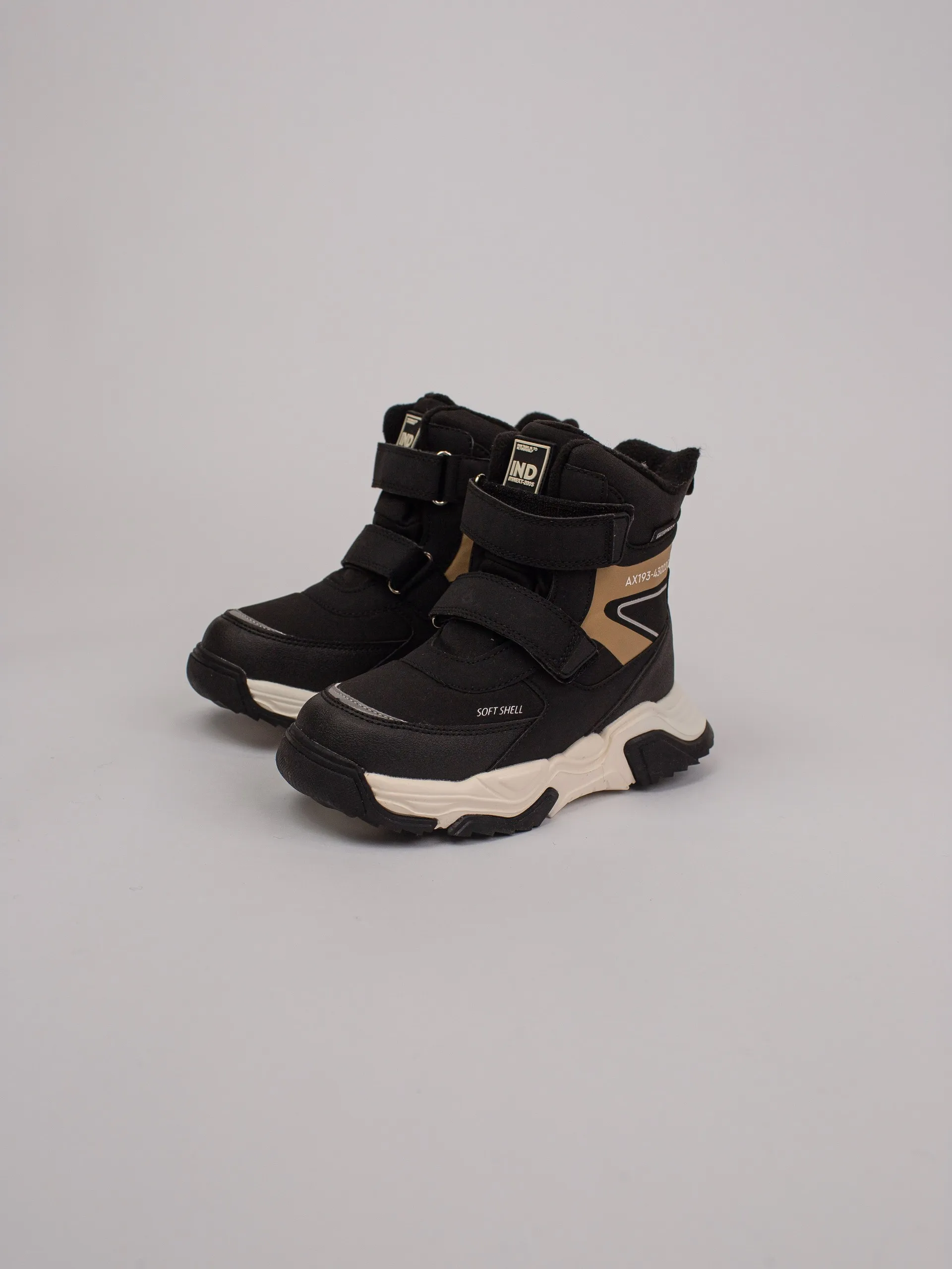 Нижний слой стельки из фольги надолго сохраняет тепло. На ноге ребенка обувь фиксируется с помощью двух ремней. Подошва легкая, при этом прочная и износостойкая из ТЭП. Рельефный протектор обеспечивает хорошее сцепление и препятствует скольжению. В модели предусмотрены вставки из светоотражателя, которые помогают ребенку быть заметным в темное время суток.