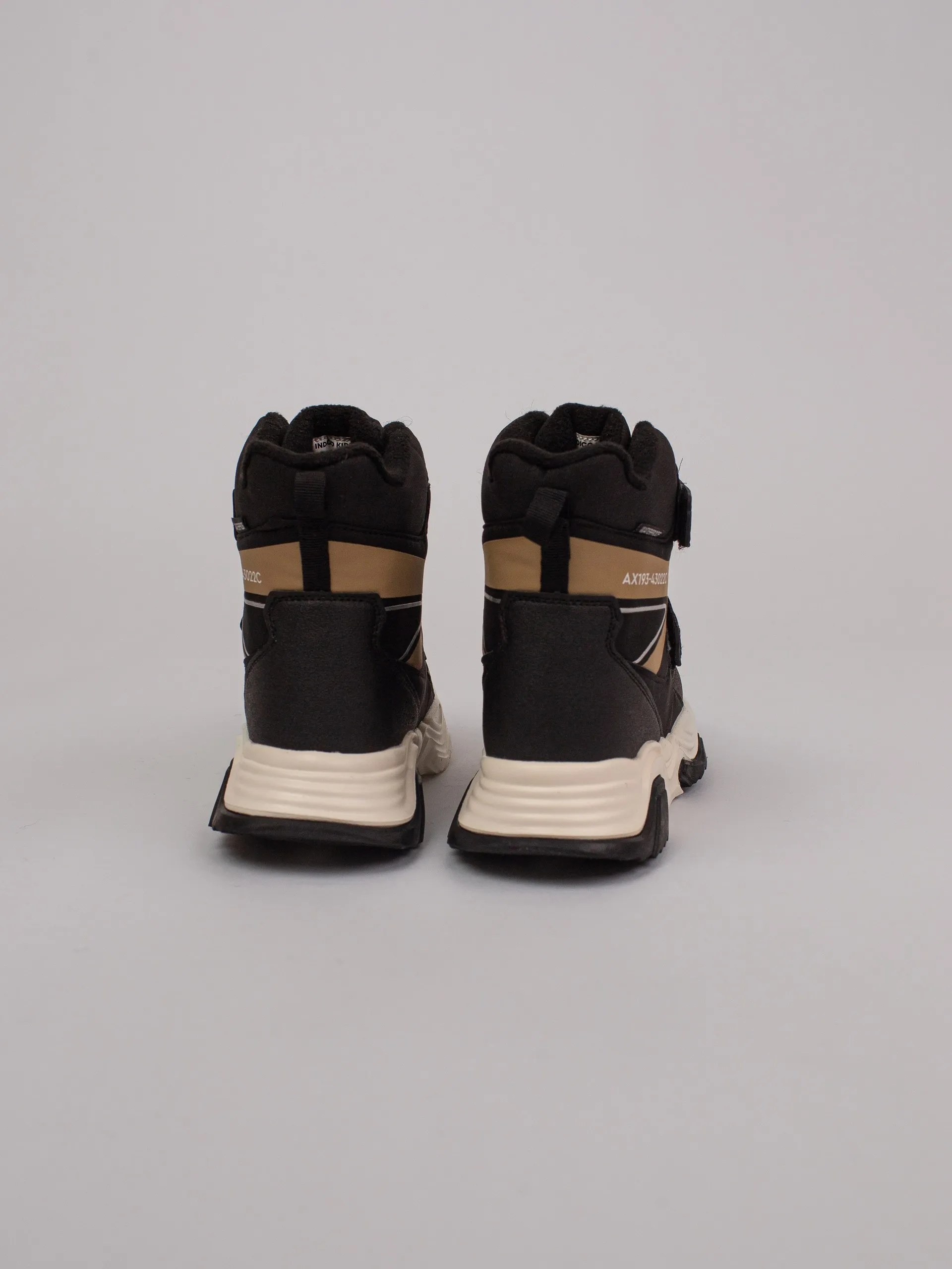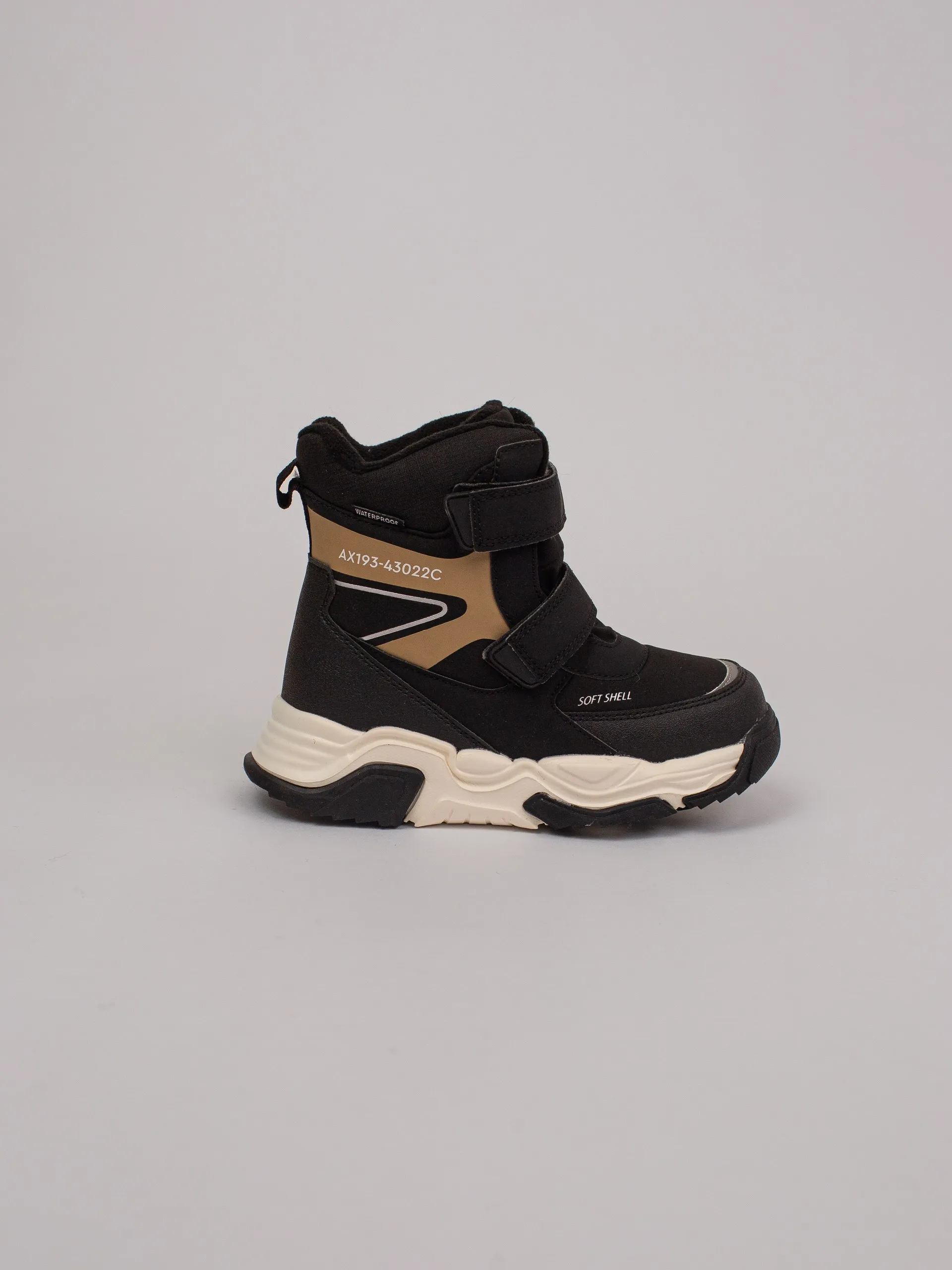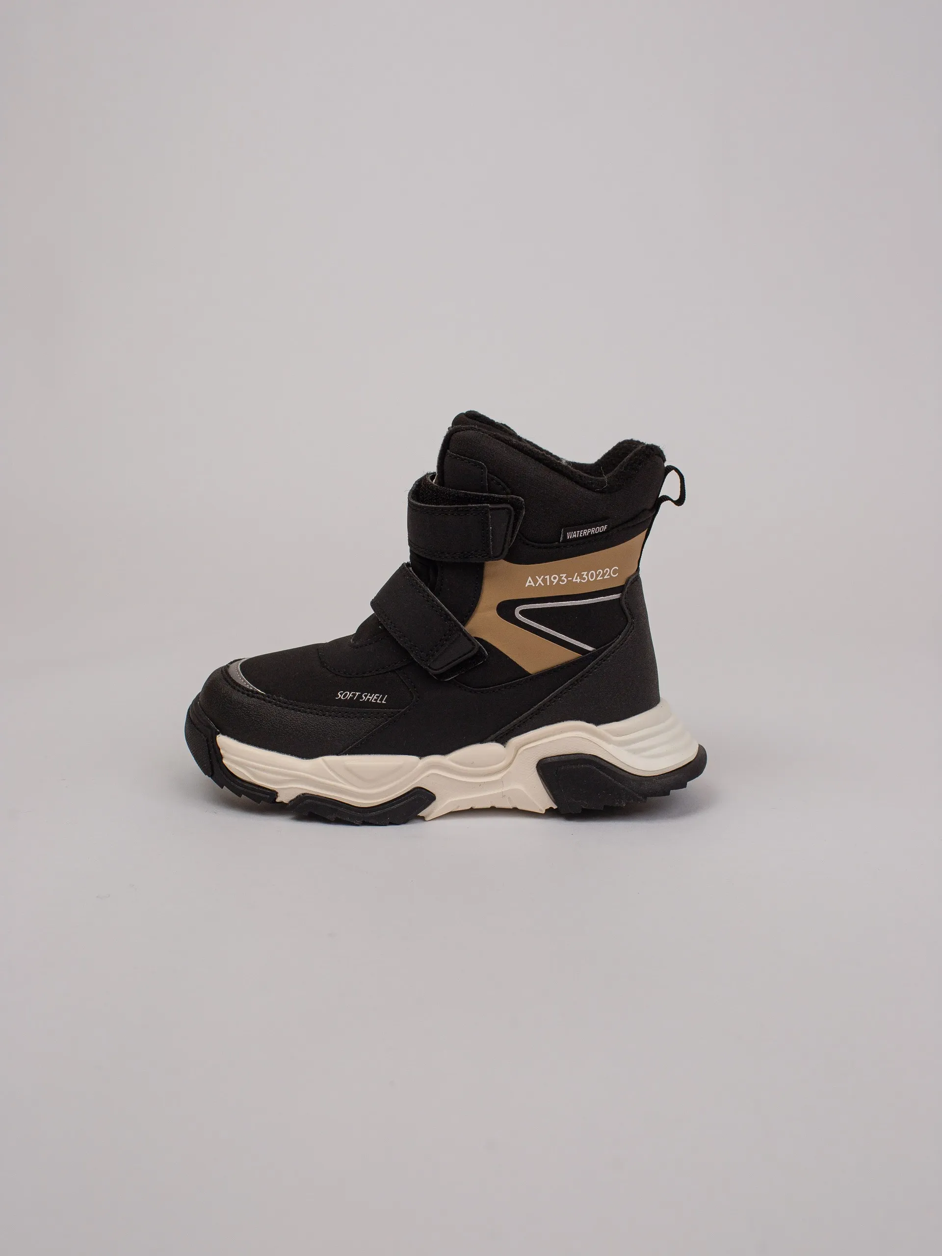 Нижний слой стельки из фольги надолго сохраняет тепло. На ноге ребенка обувь фиксируется с помощью двух ремней. Подошва легкая, при этом прочная и износостойкая из ТЭП. Рельефный протектор обеспечивает хорошее сцепление и препятствует скольжению. В модели предусмотрены вставки из светоотражателя, которые помогают ребенку быть заметным в темное время суток.