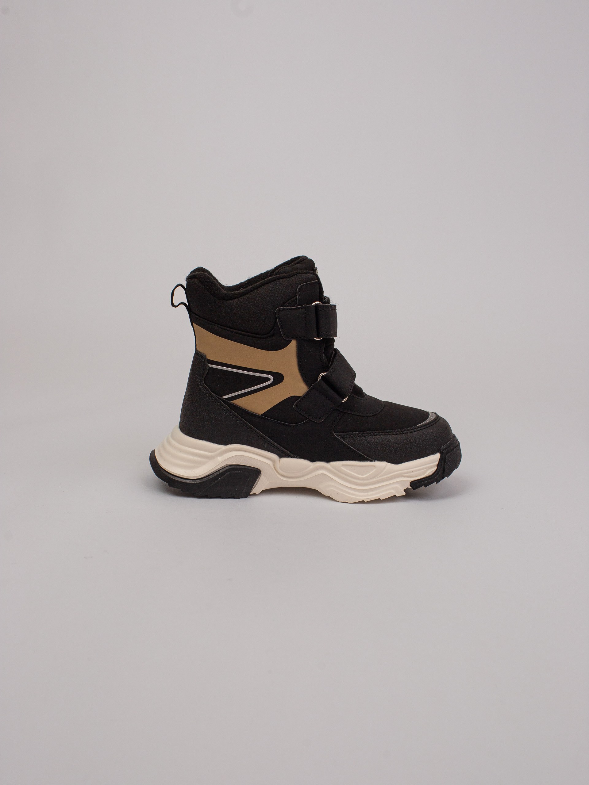 Нижний слой стельки из фольги надолго сохраняет тепло. На ноге ребенка обувь фиксируется с помощью двух ремней. Подошва легкая, при этом прочная и износостойкая из ТЭП. Рельефный протектор обеспечивает хорошее сцепление и препятствует скольжению. В модели предусмотрены вставки из светоотражателя, которые помогают ребенку быть заметным в темное время суток.