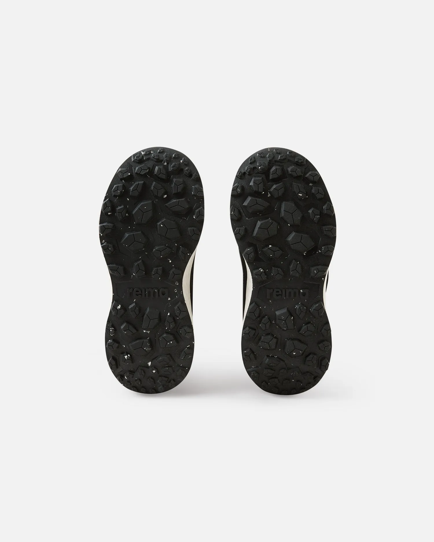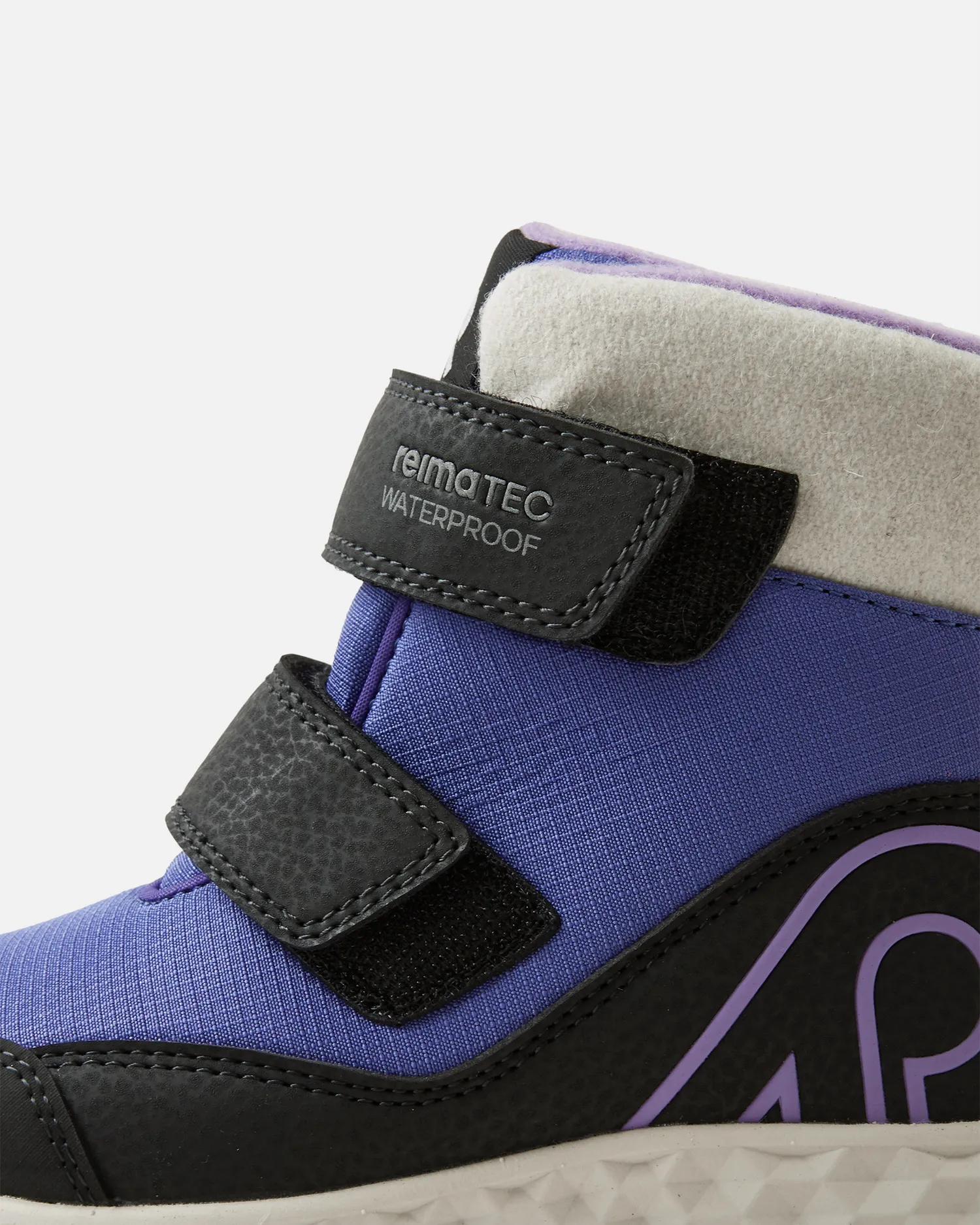 Эта модель прошла испытания в лабораторных условиях на теплоизоляцию до -20°C/-4°F. Эта обвуь не содержить продуктов животного происхождения и оснащена водонепроницаемой мембраной для сухости и комфорта, а также съемными стельками с принтом Happy Fit для легкого подбора идеального размера. Светоотражающие детали улучшают заметность в темноте, а флисовая подкладка добавляет тепла. Кроме того, гибкая и легкая подошва из EVA и резины содержит переработанную резину в составе, что является еще одним шагом к цикличному производству — одной из целей разработки продукции Reima.